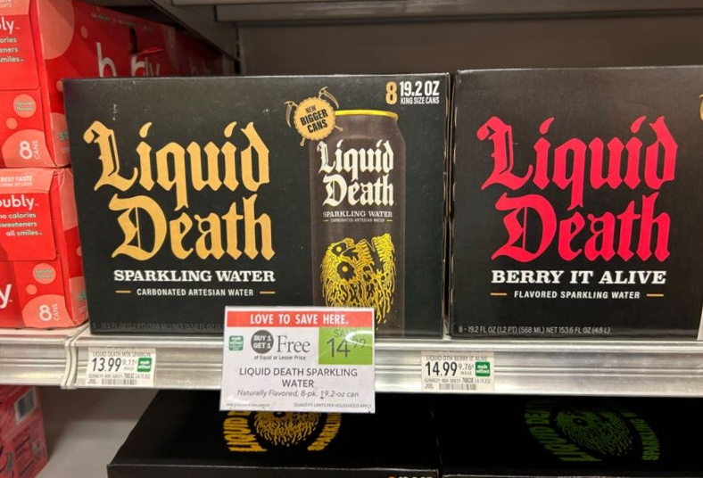Head over to Publix for a deal on Liquid Death Mountain Water. This week the 8-packs of cans are BOGO. Add in the cash back offer to pay as little as $4 per pack the next time you shop!