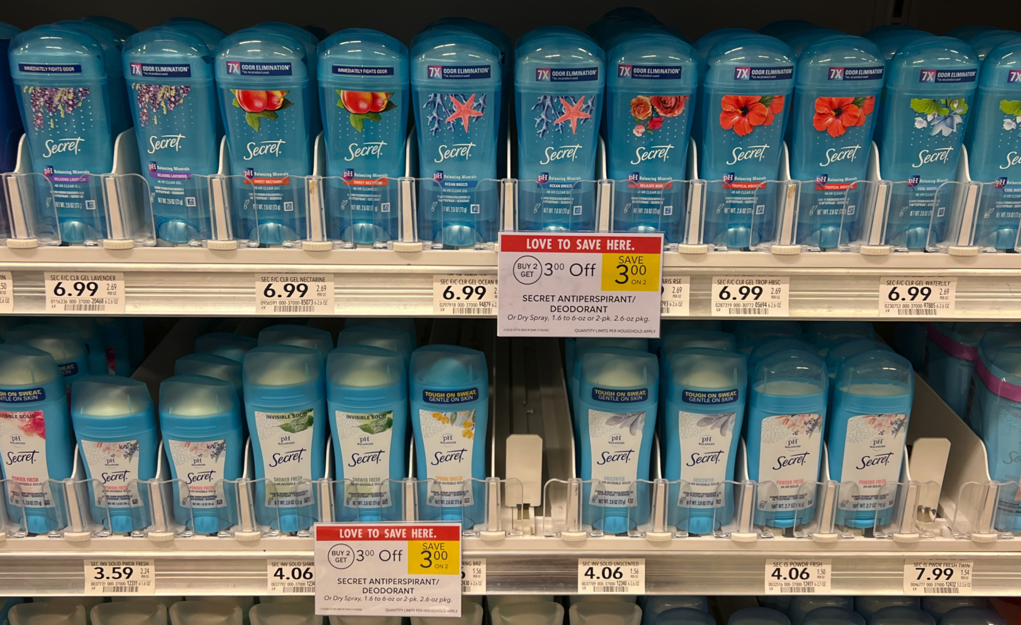 –$2/3 Secret 24 HR Antiperspirant (excludes trial/travel size (Publix Digital Coupon)