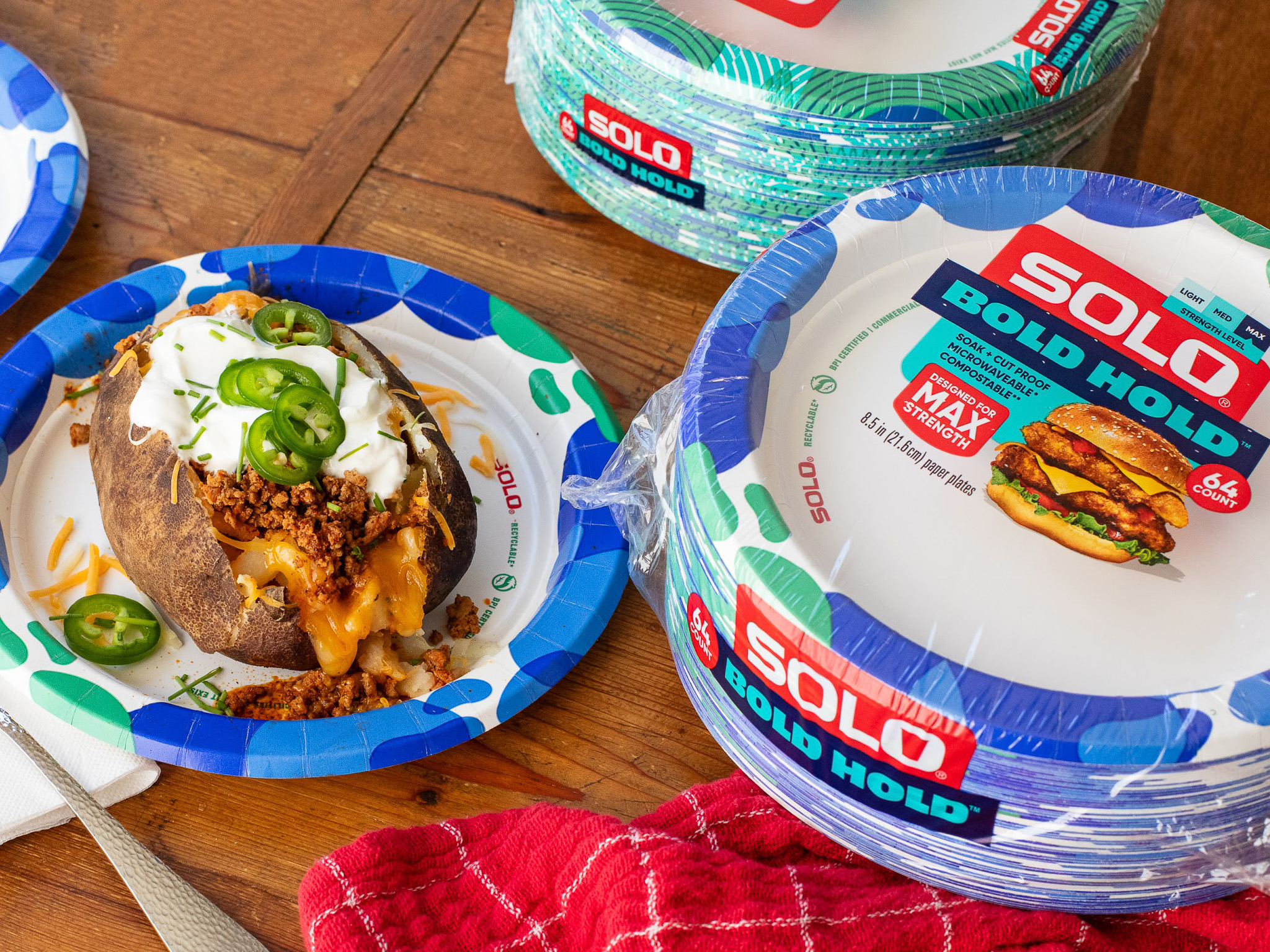 Solo Bold Hold Paper Plates have MAX strength and hold up to the messiest of meals. These plates are perfect for larger portions and everyday needs. Make a splash in any setting with two creative designs to choose from. The Solo Bold Hold line is strong and stylish to serve any dis, from steak and potatoes to chicken parmesan!