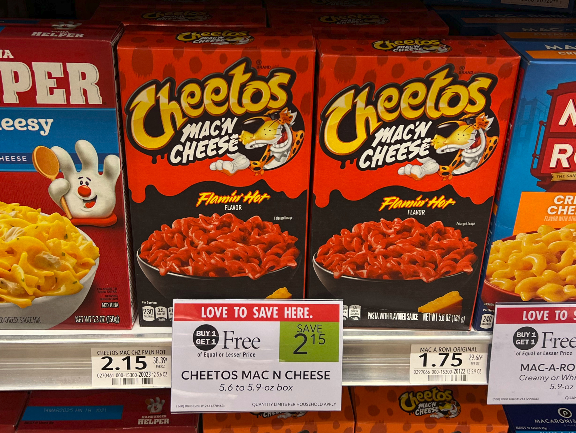 Pair the BOGO and cash back offer to pick up the boxes of Cheetos Mac ‘n Cheese for just 58¢ each the next time you shop.