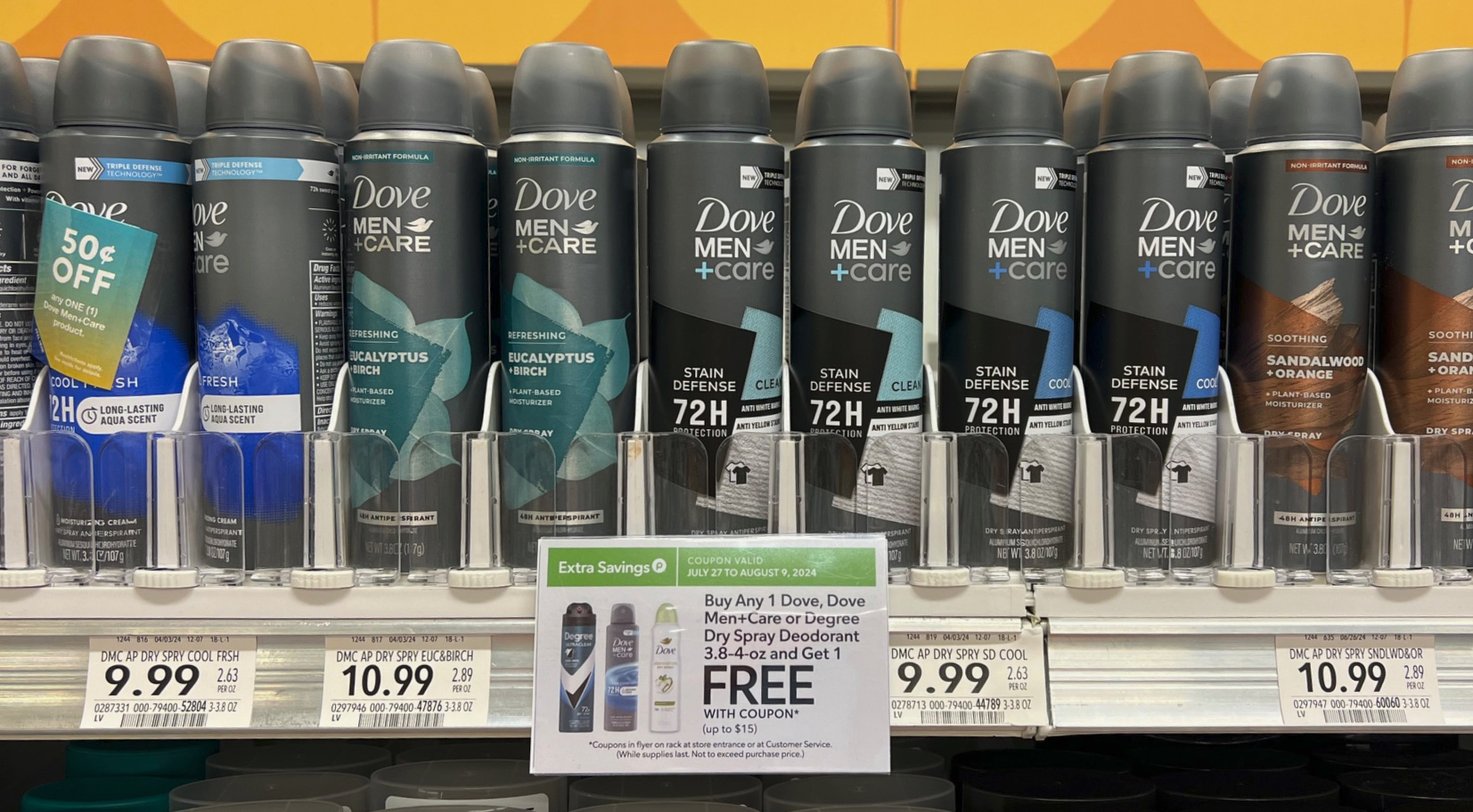 -B1G1 Dove, Dove Men+Care, or Degree Dry Spray Deodorant, 3.8 to 4 oz, Extra Savings Flyer In-Ad Publix Coupon (valid 7/27 to 8/9)