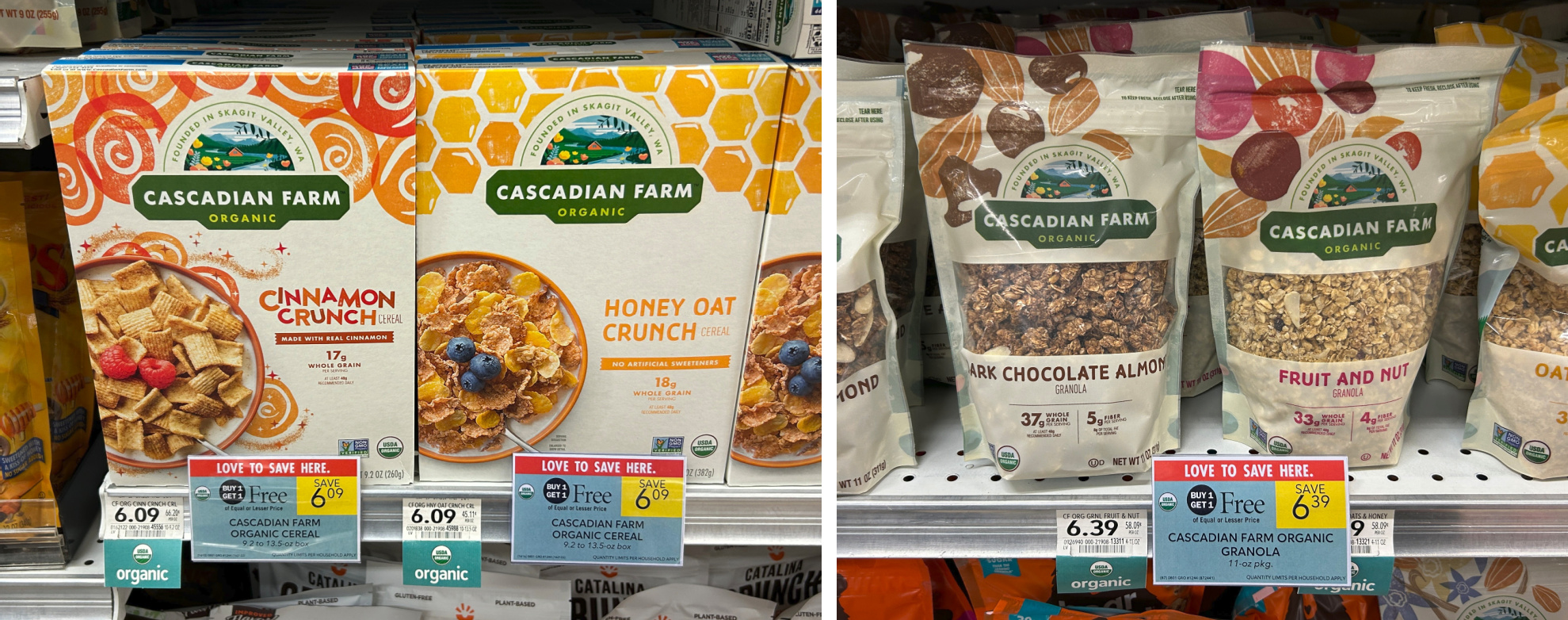 Cascadian Farm Organic Cereal, 9.2 to 13.5 oz, or Granola, 9 or 11 oz, BOGO $6.09 – $6.39