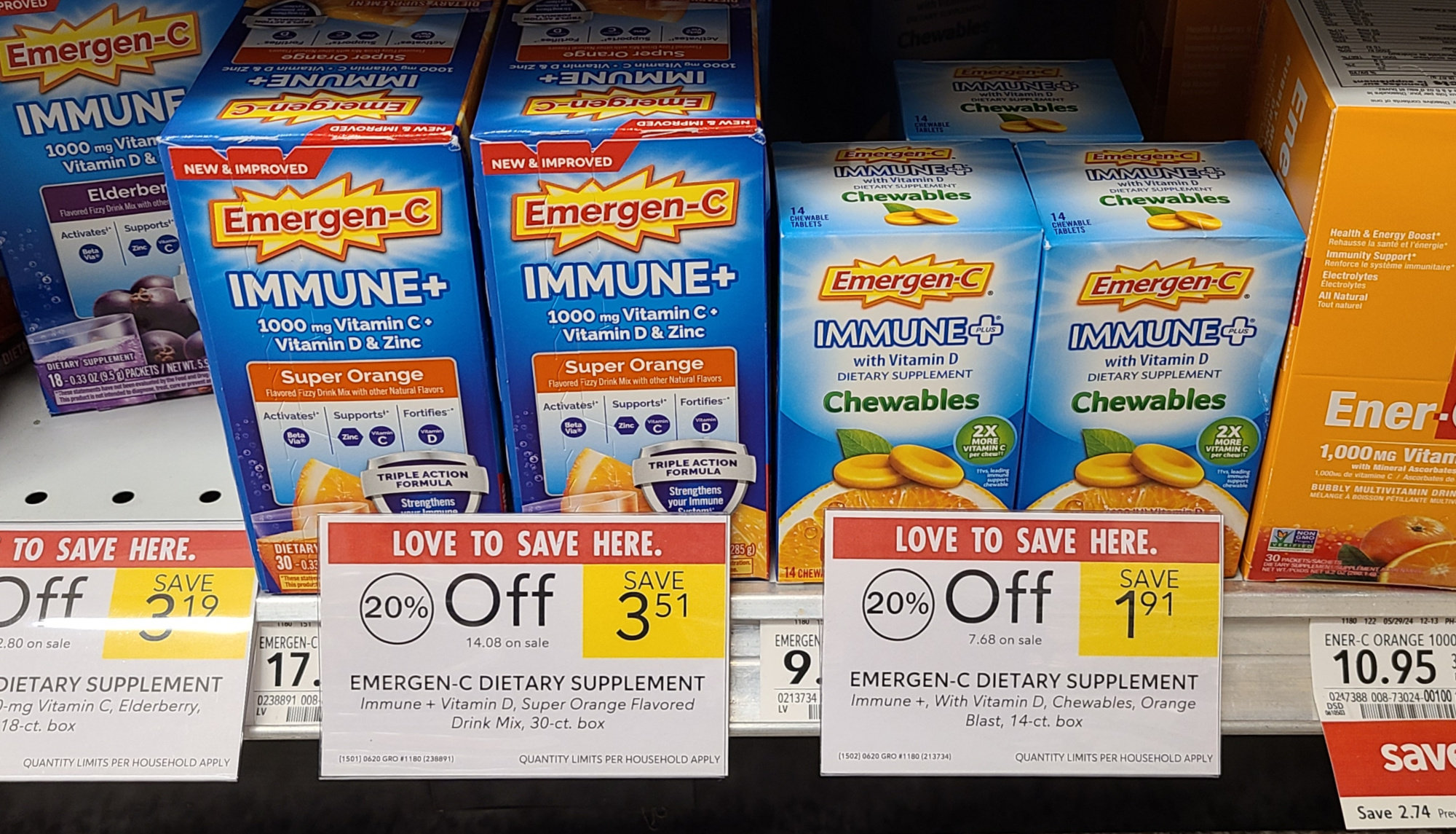 Emergen-C Dietary Supplement, 14 to 63 ct, 20% Off, $9.59+