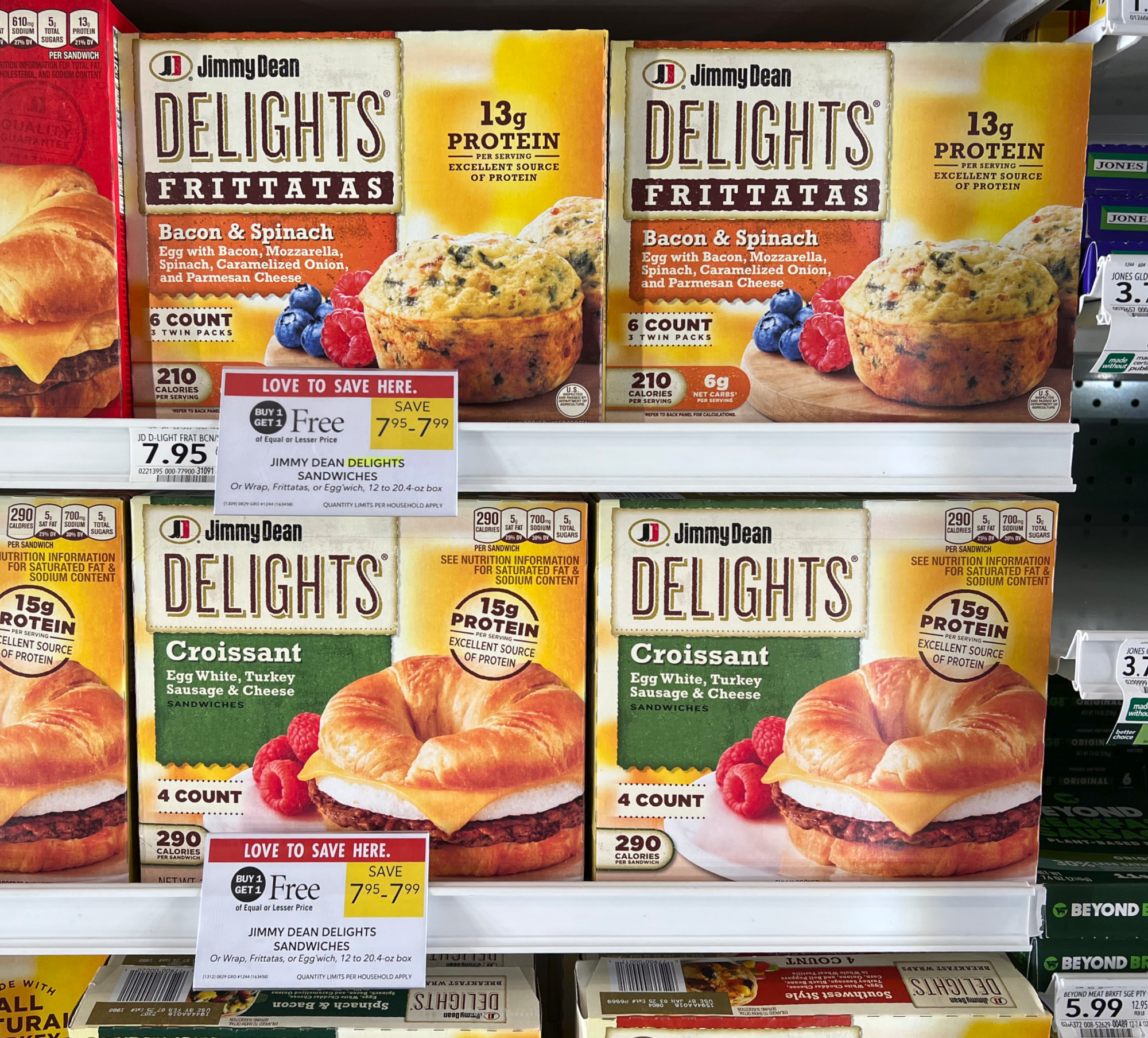 Jimmy Dean Delights Sandwiches, or Wrap, Frittatas, or Egg’wich, 12 to 20.4 oz box, BOGO $7.95 – $7.99