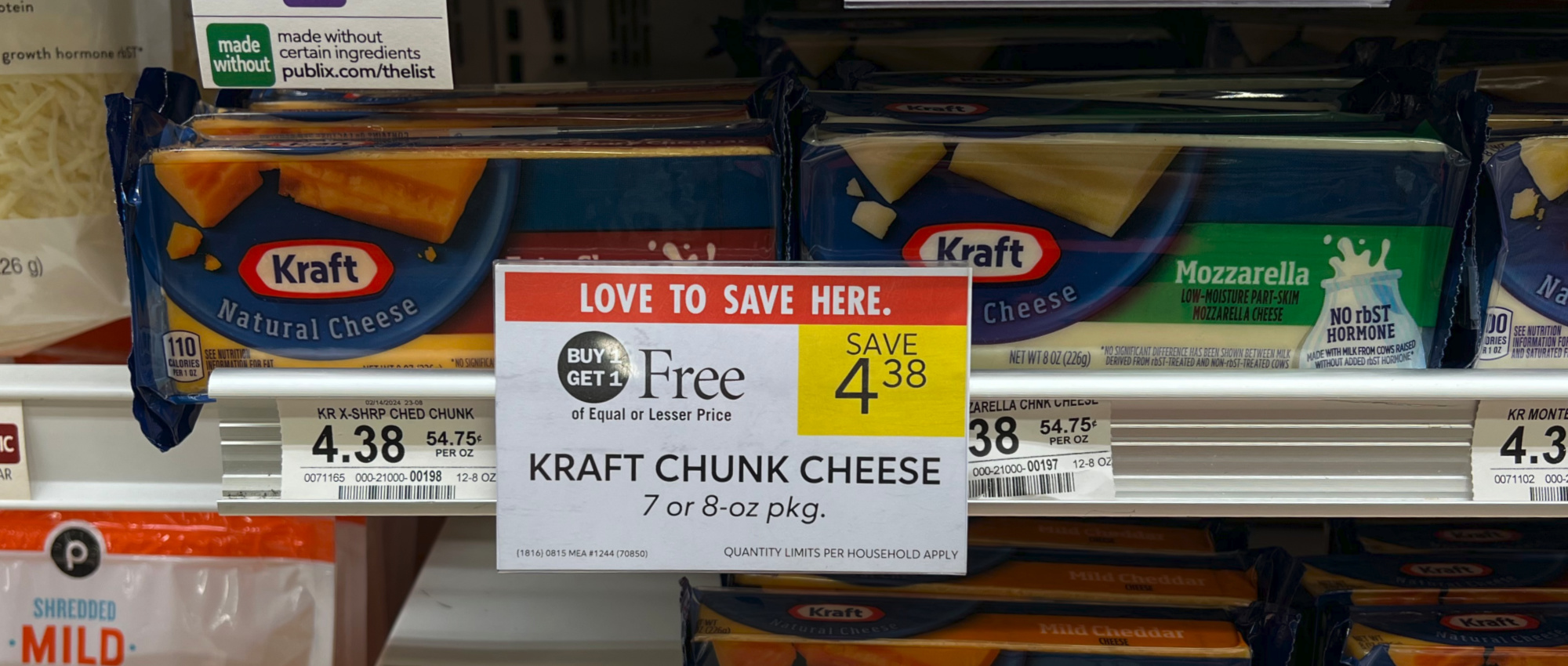 Kraft Chunk Cheese, 7 or 8 oz, BOGO $4.38