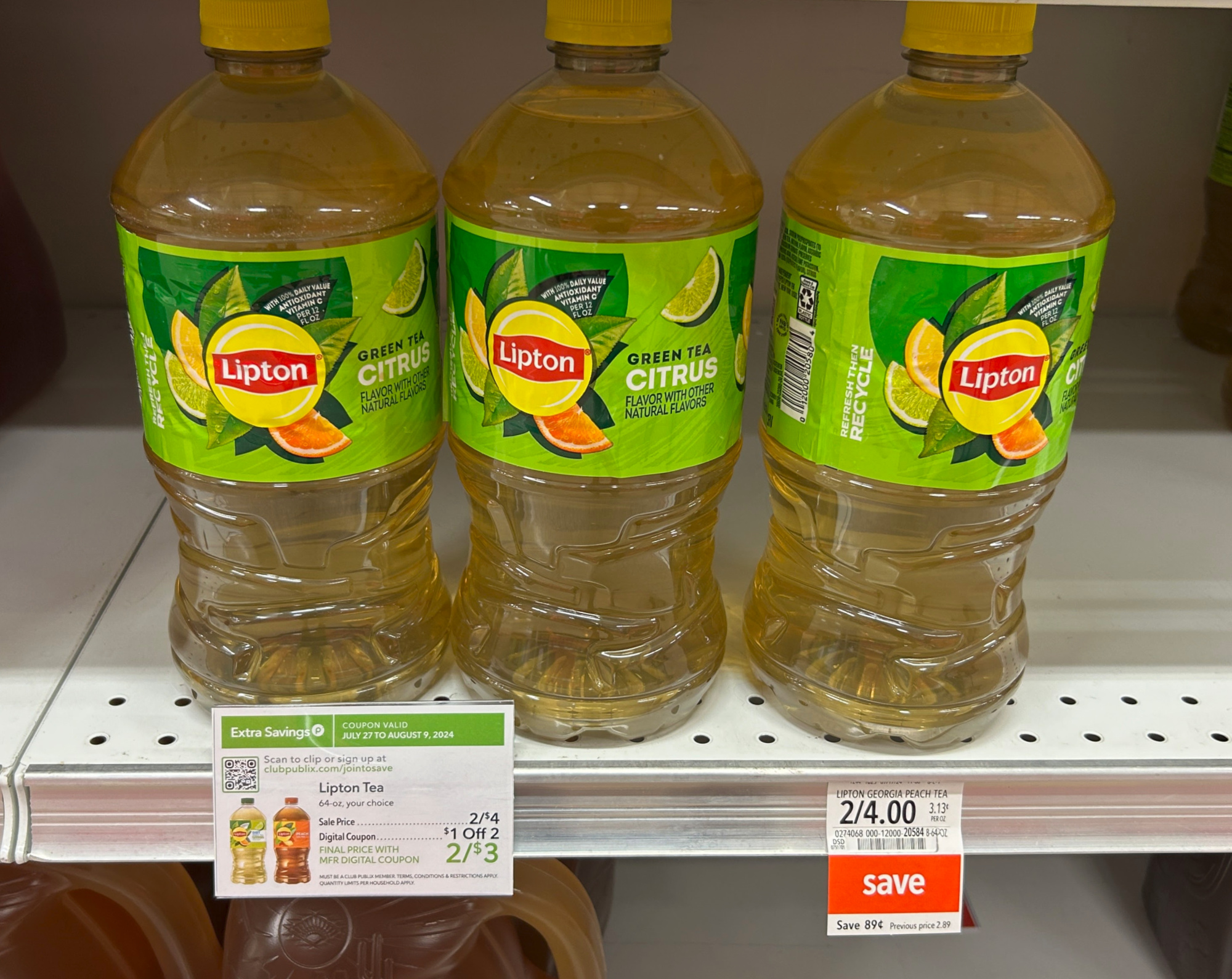 –$1/2 Lipton Tea, 64 oz (Publix Digital Coupon)