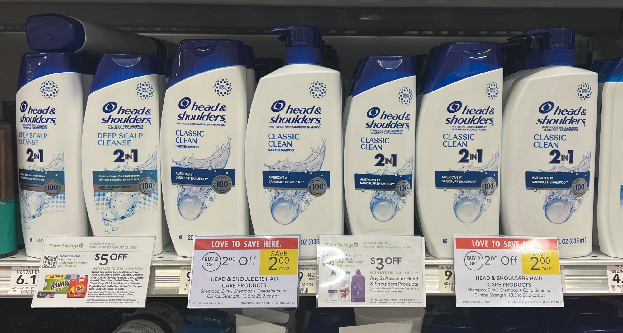 –$5/2 Head & Shoulders Products (excludes supreme, clinical, bare, sachets and trial/travel size). (Publix Digital Coupon)