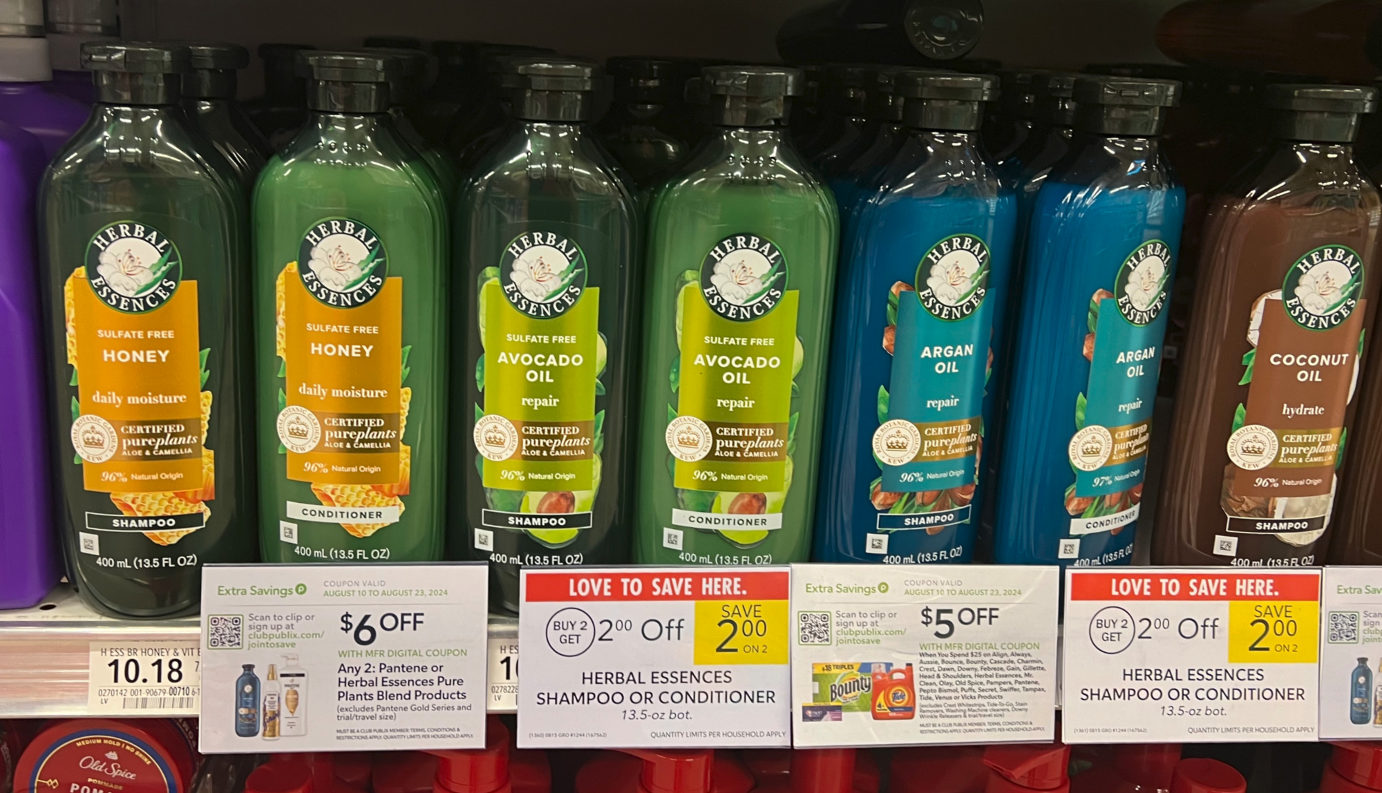 –$6/2 Herbal Essences Pure Plants Blend Shampoo, Conditioner OR Styling Products (excludes masks, 100 mL shampoo and conditioners, and trial/travel size) (Publix Digital Coupon)