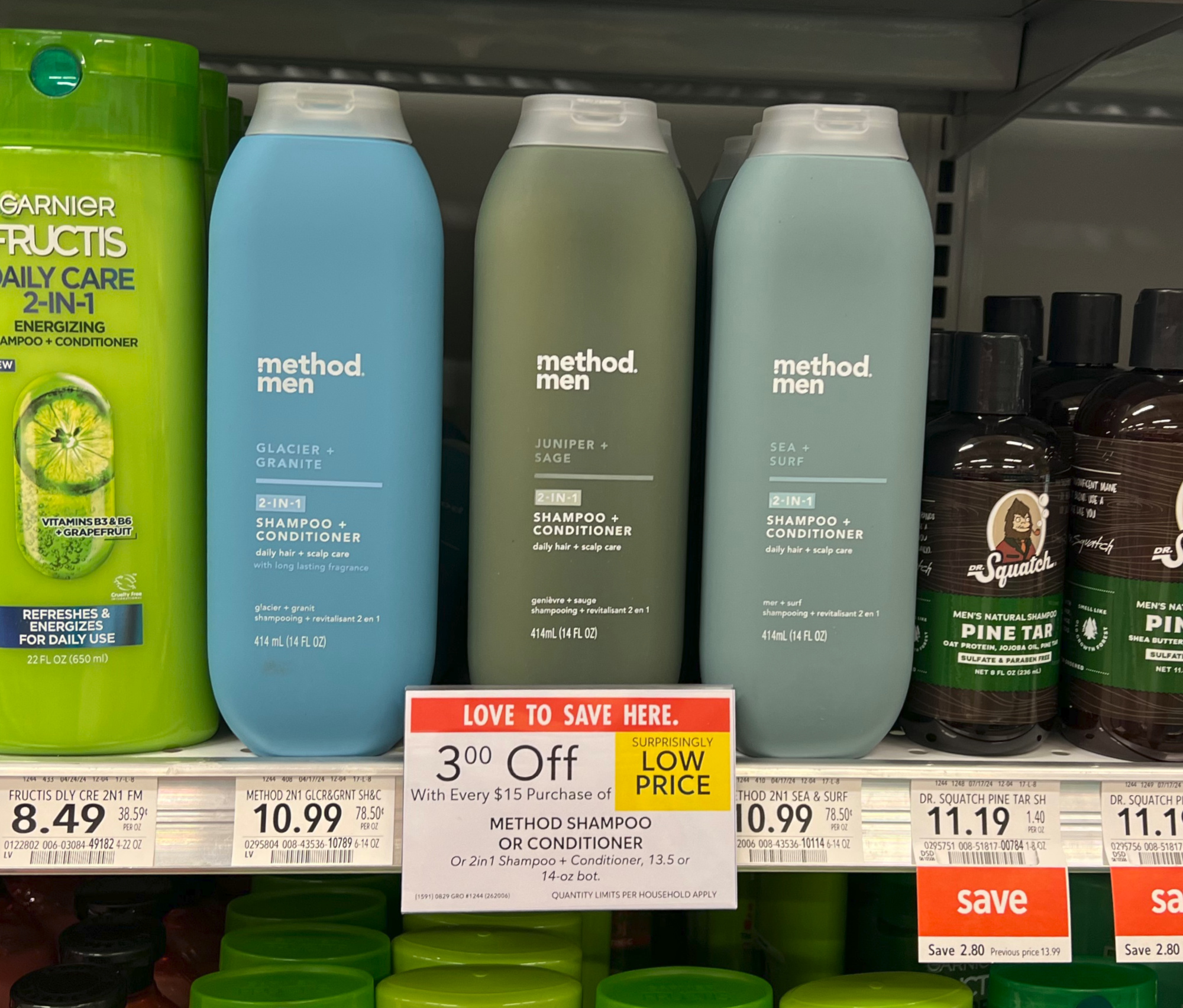 Head over to Publix for a deal on Method Hair Care. Combine the sale and coupon to pay as little as $6.49 per bottle…that’s a way better price than the original $10.99!