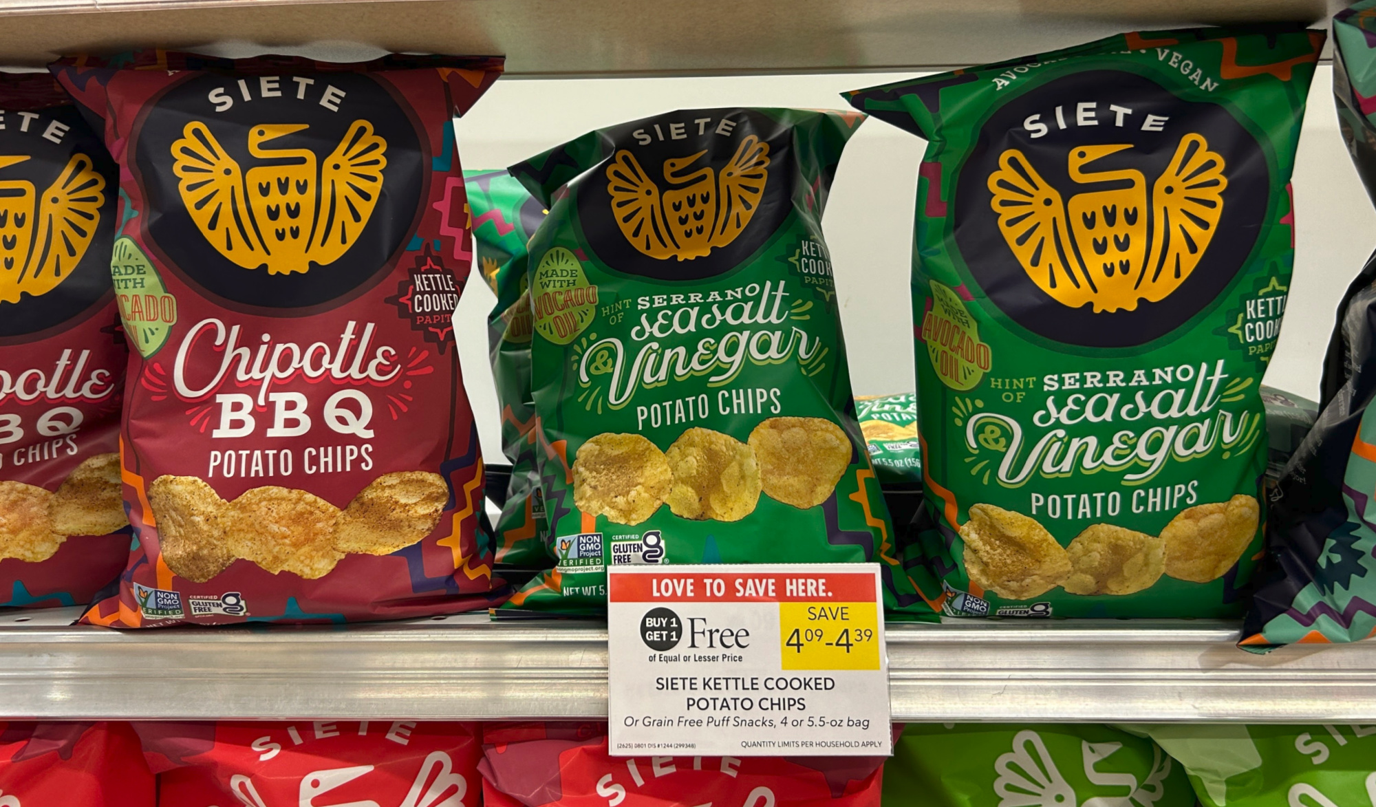 Siete Kettle Cooked Potato Chips, or Grain Free Puff Snacks, 4 or 5.5 oz, BOGO $4.09 – $4.39