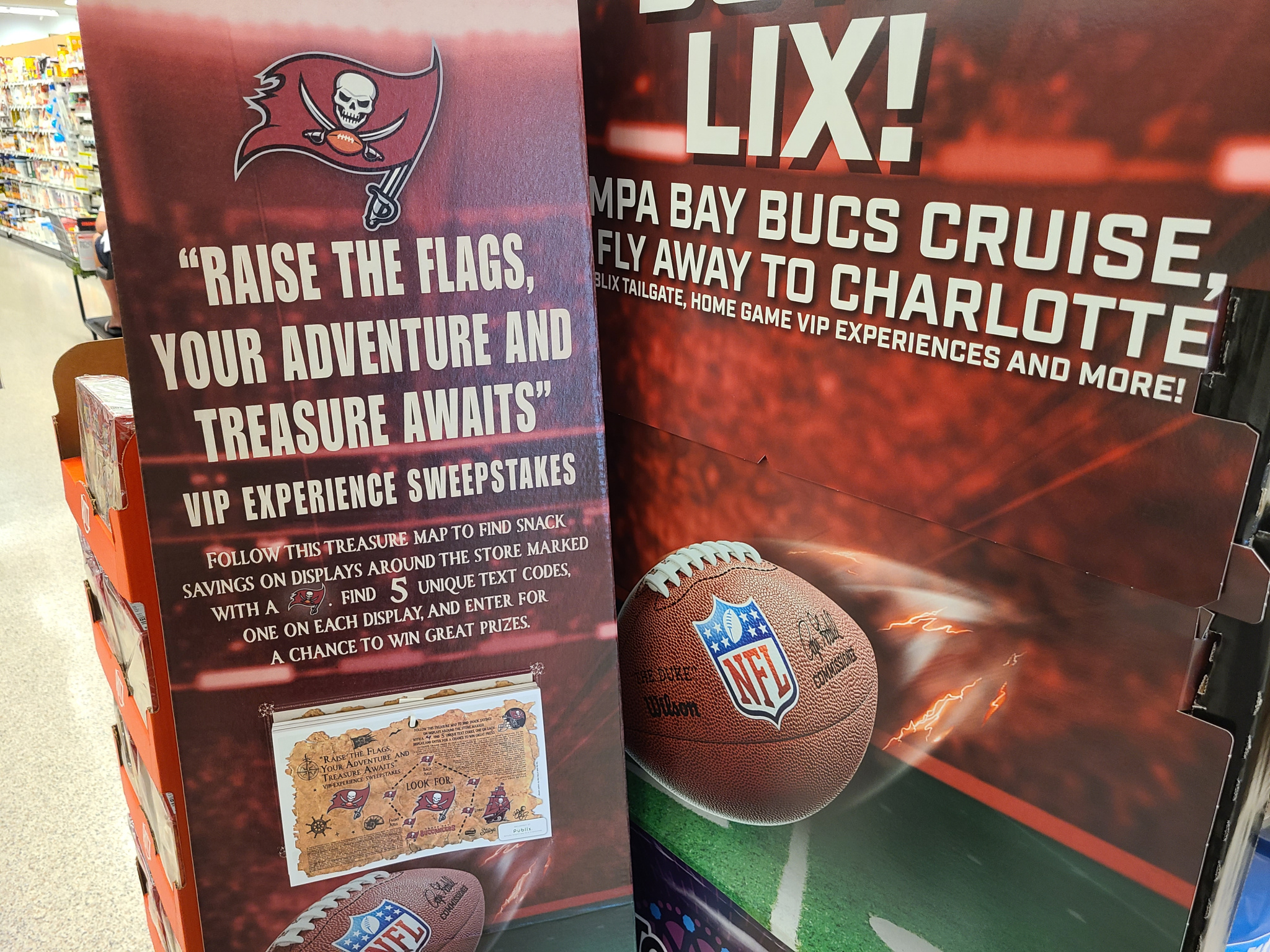 - Third Prize: (3) winners – “Ultimate Publix-Frito-Lay Tailgate VIP Experience” Four (4) Game Tickets, Four (4) Tailgate Passes, and One (1) Parkling Pass for the Bucs Home Game vs Las Vegas Raiders on 12/8/24 (Entry Deadline 11/18/24)