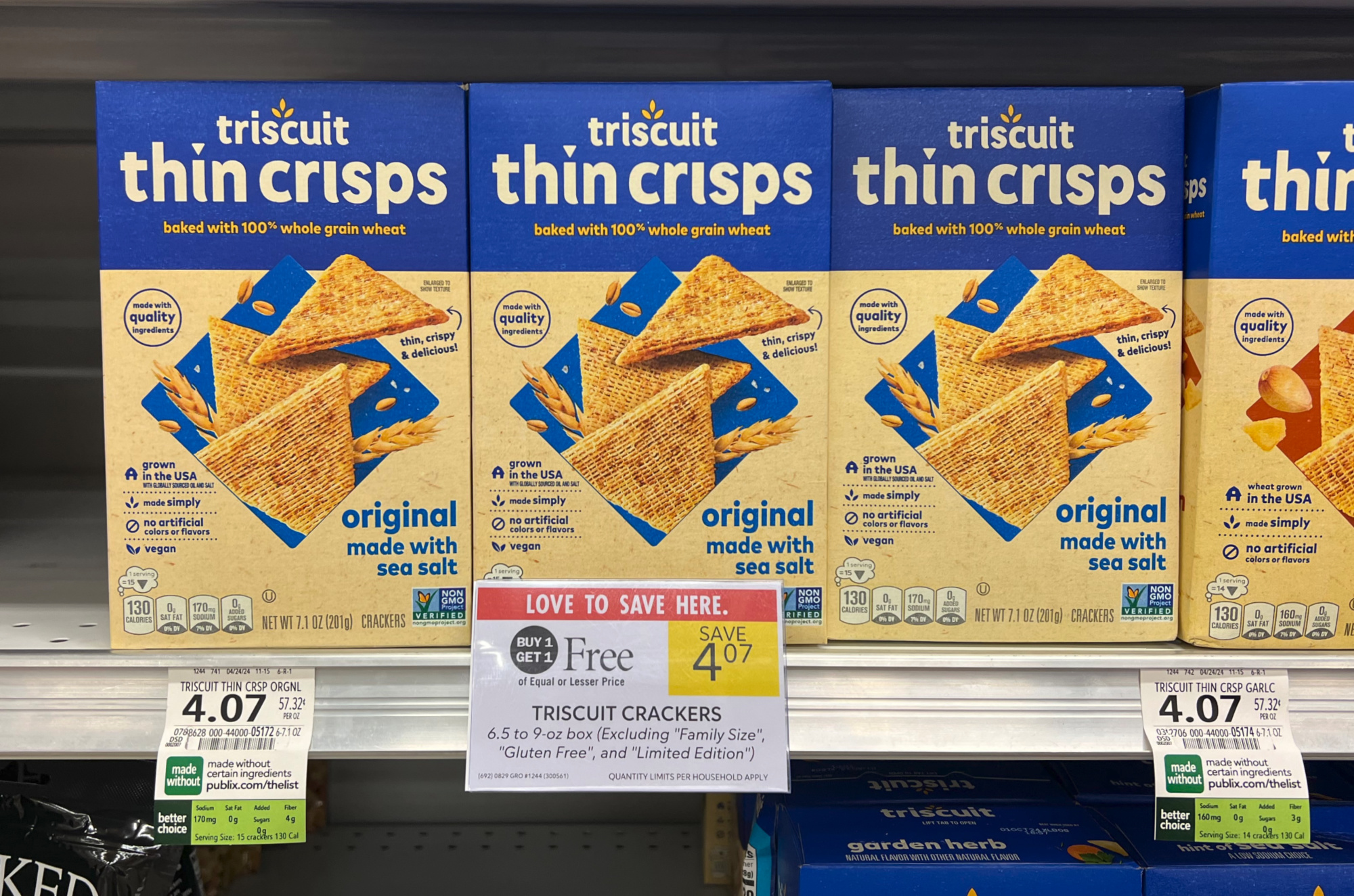 Need some crackers for your charcuterie boards? Load up on Triscuit, Wheat Thins or Good Thins Crackers and save with the sale and cash back combo. After discounts you can get the boxes for just $1.66 at Publix.
