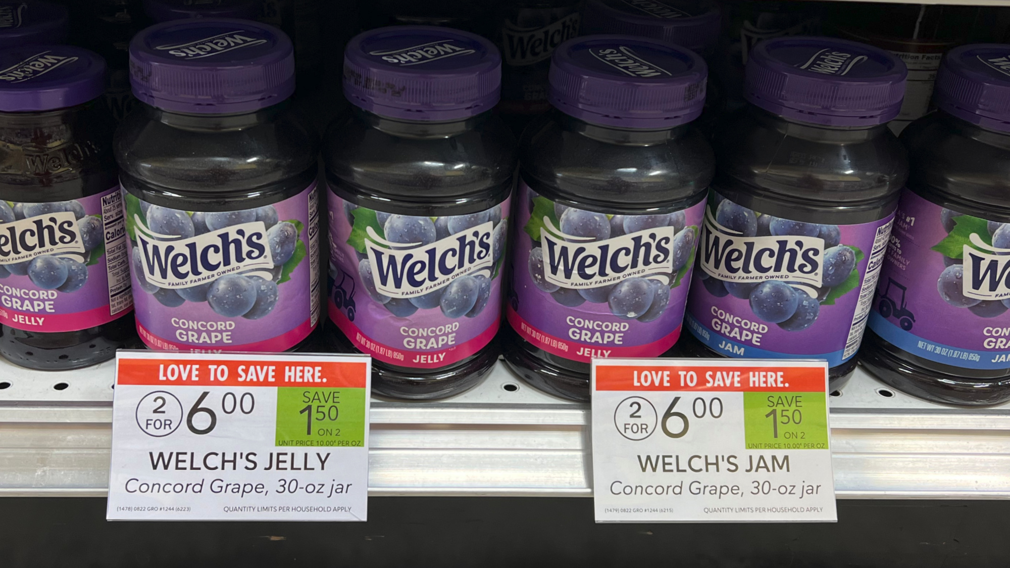 Welch’s Concord Grape Jam or Jelly, 30 oz jar, 2/$6 (reg $3.75)