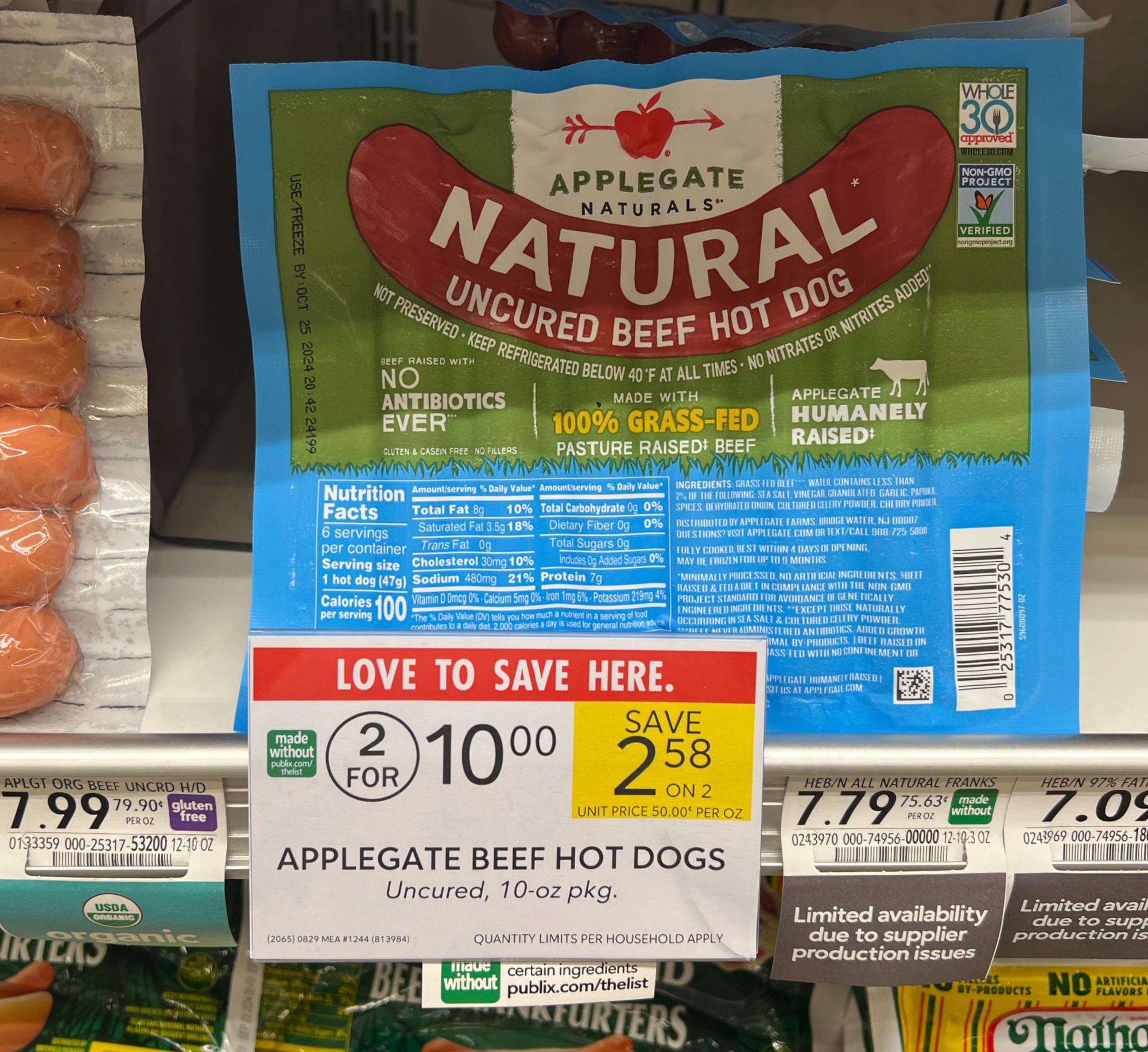 Right now you can get Applegate Beef Hot Dogs for a discounted price at Publix. Combine the sale and coupon to get the packs for as little as $4 each the next time you shop.