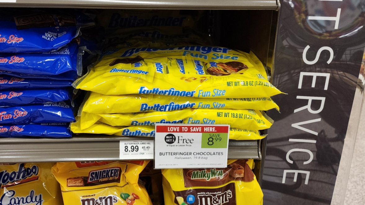 -$2/3 Butterfinger, Crunch, Baby Ruth, or 100 Grand, Fun Size, 10 oz or larger bags, 9/22 SAVE (exp 11/1/24)