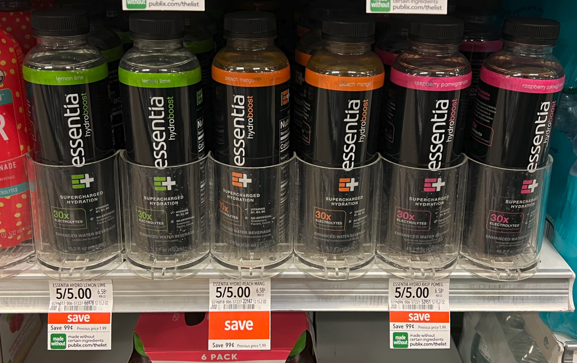 Right now you can pick up a nice deal on Essentia Hydroboost Enhanced Water at Publix. Combine the sale and coupon to pay just 25¢ per bottle.