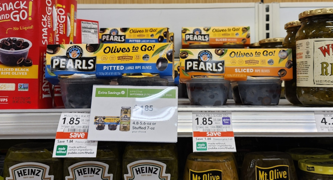 Get the 4-pack of Pearls Olives To Go! for only $1.60 at Publix after sale and cash back. These are great to use as snacks or even to pack in lunches! Take advantage of this deal and add a couple of packs to your pantry.