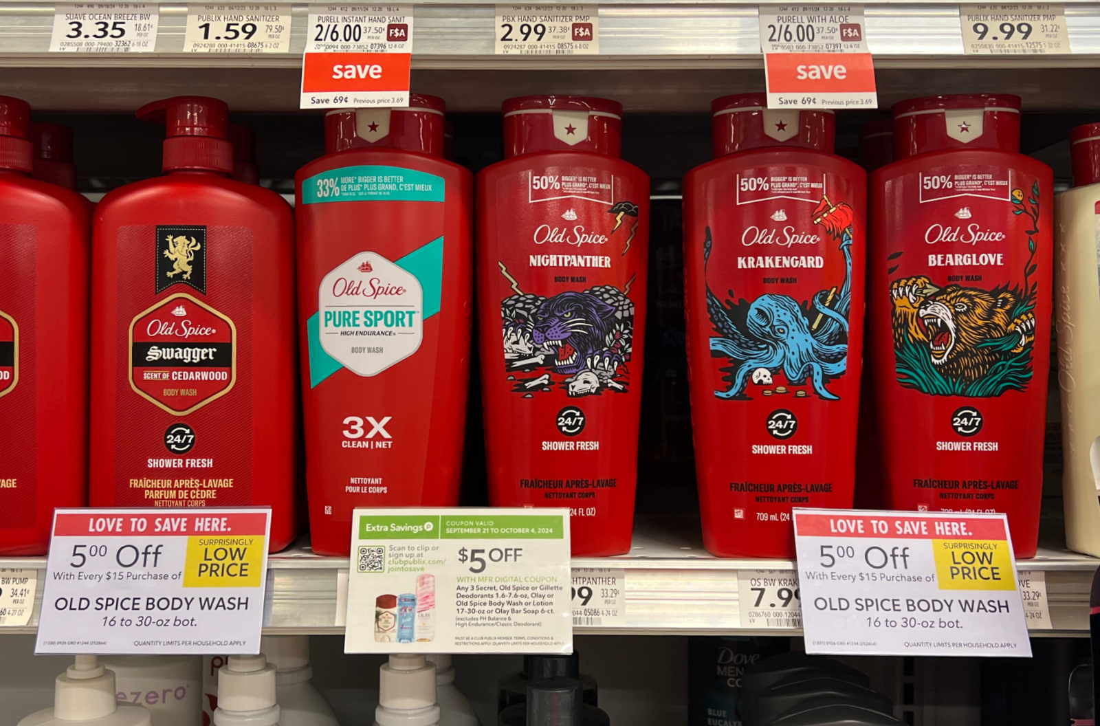 –$5/3 Old Spice Antiperspirant/Deodorant, Body Wash, or Hair Care Product (excludes High Endurance Twin Packs, Total Body, Sprays, Super Hydration, and trial/travel size) (Publix Digital Coupon)