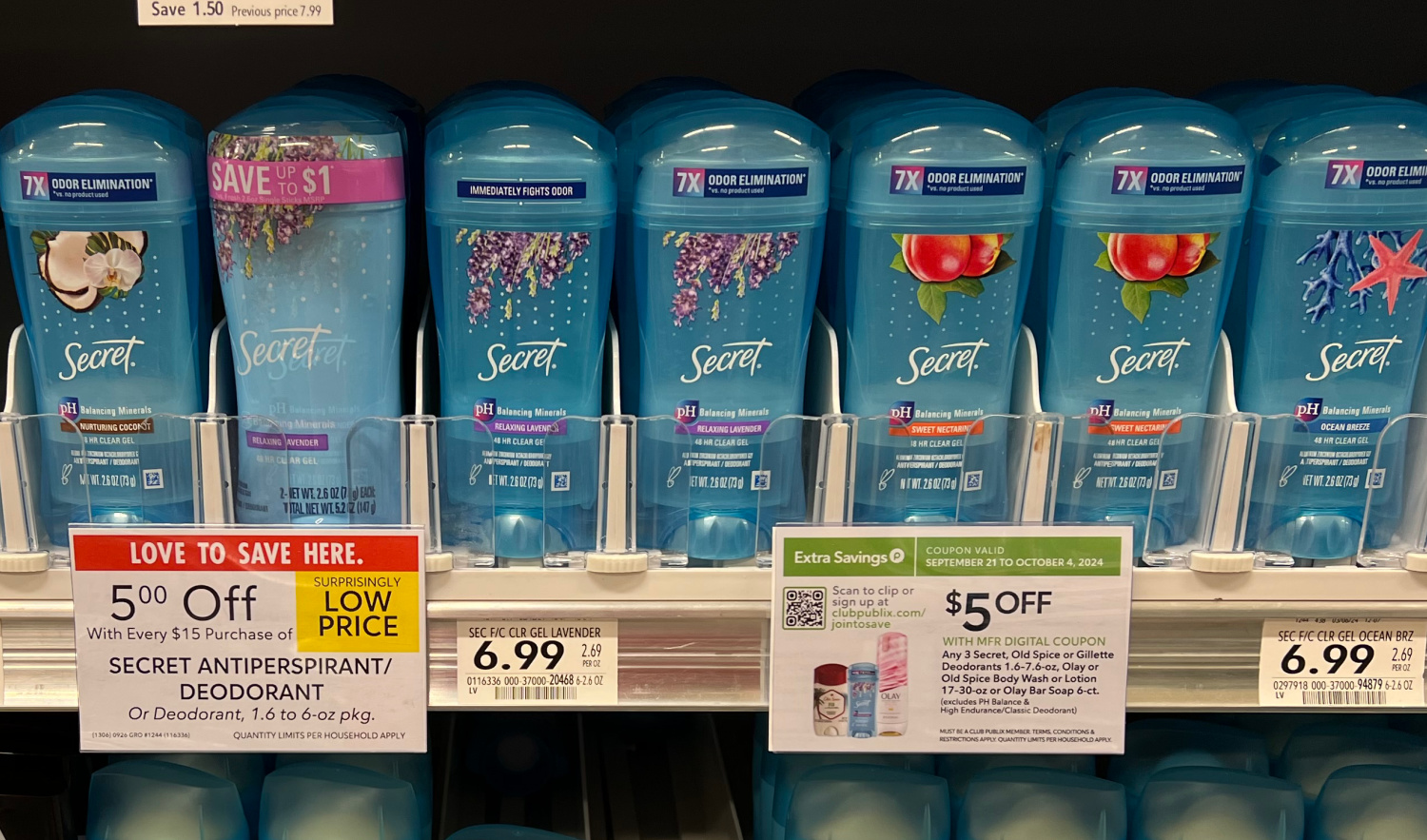 –$3/1 Secret Whole Body Deodorants (excludes trial/travel size) (Publix Digital Coupon)