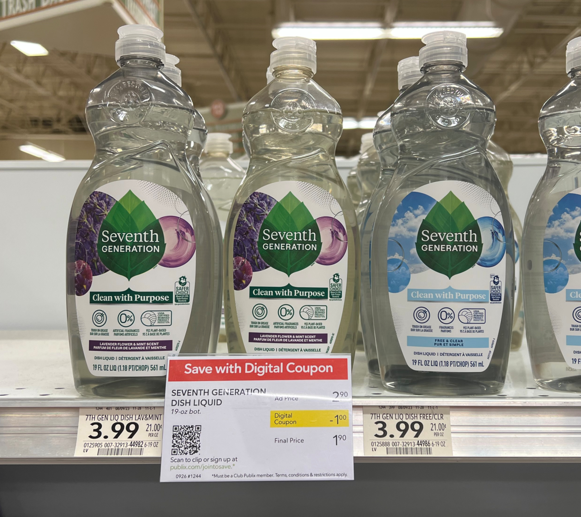 –$1/1 Seventh Generation Dish Liquid, 19 oz (Publix Digital Coupon)