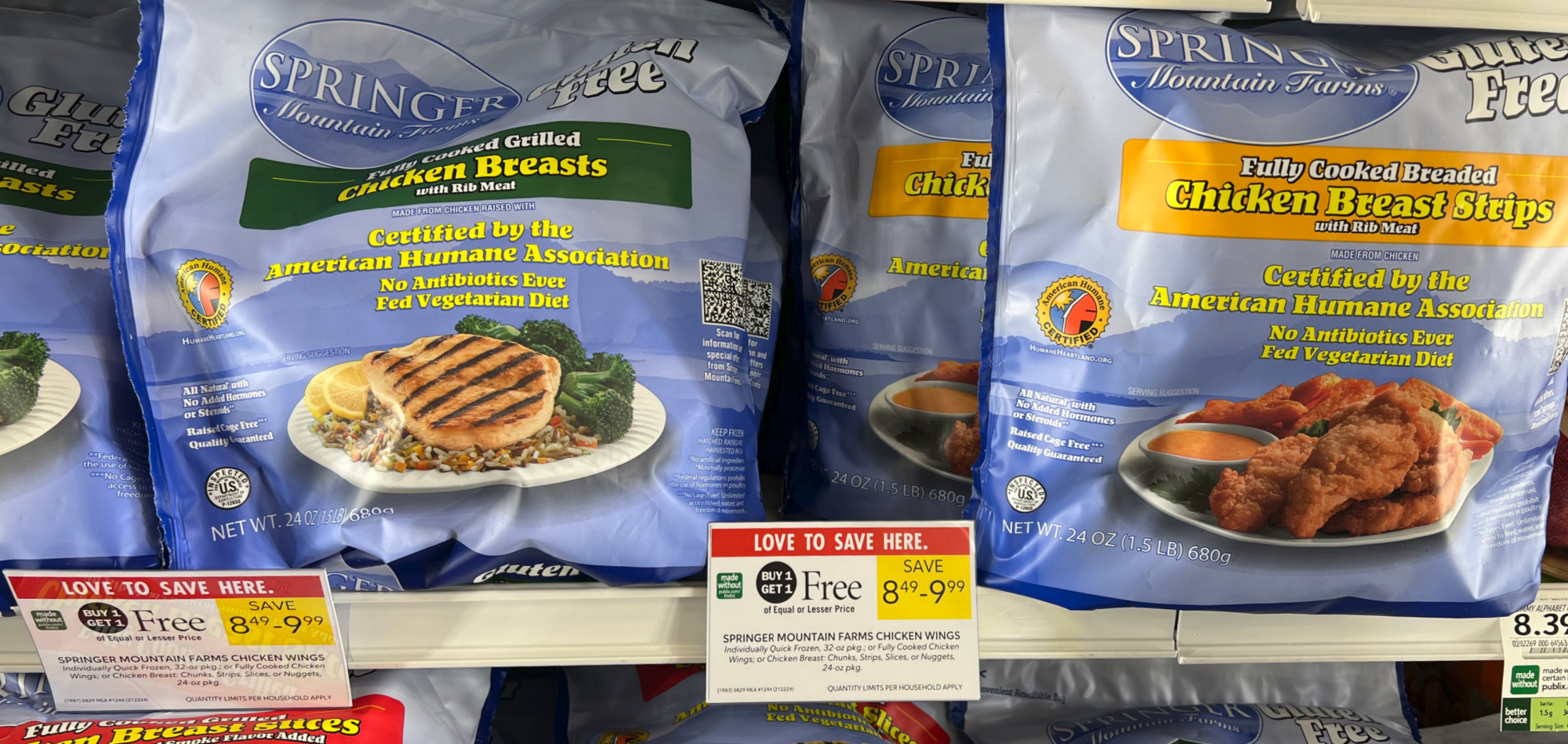Right now you can pick up the bags of Springer Mountain Farms Frozen Chicken at a super discount. Check your last email, print your coupon and get the chicken as low as $2.75 the next time you shop.
