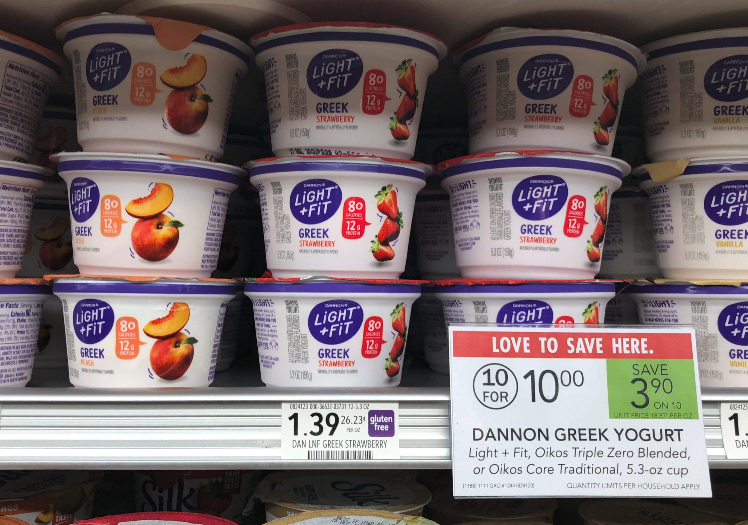Dannon Light+Fit Greek Yogurt, 5.3 oz cup, 10/$10