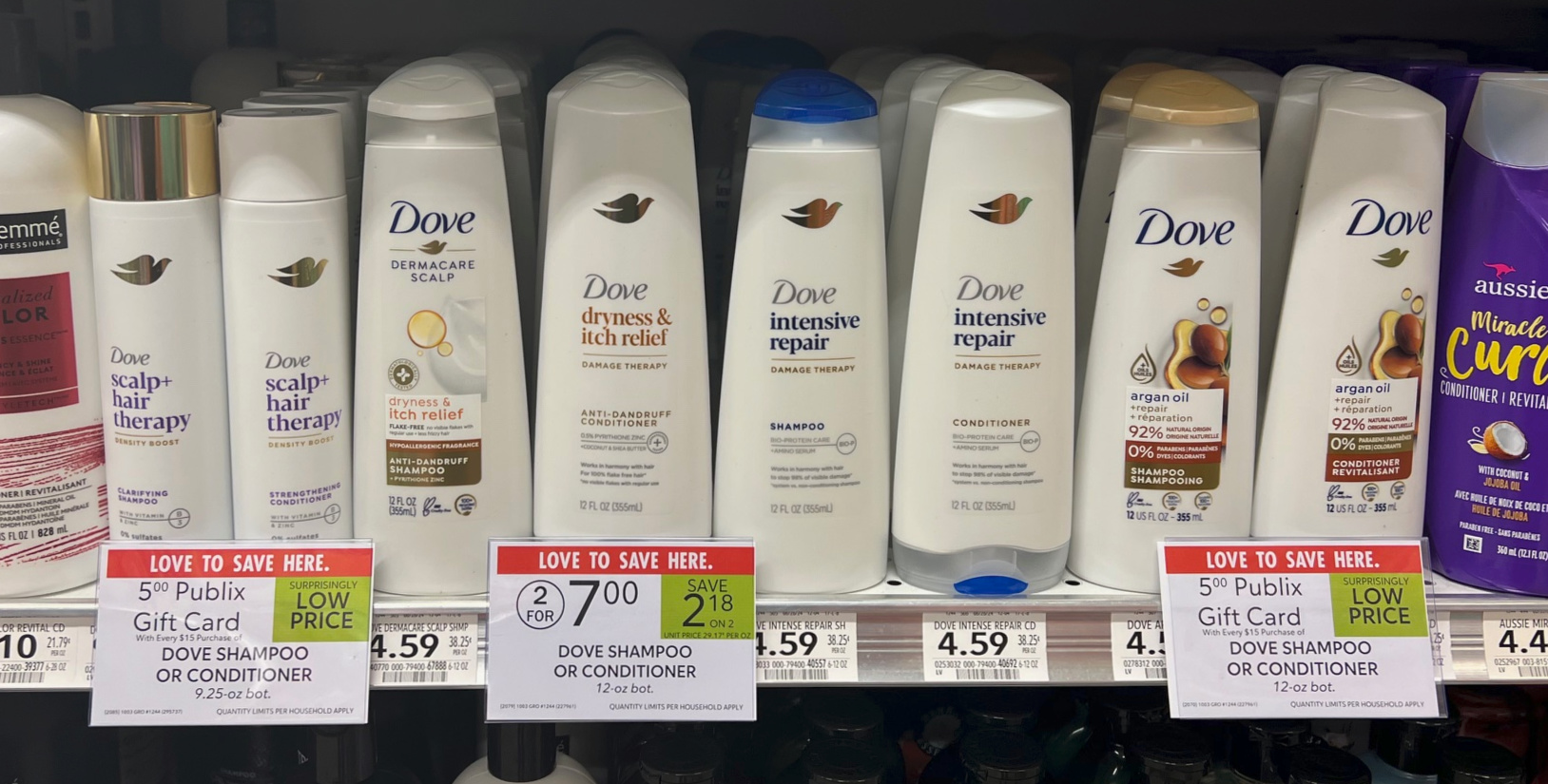 Use the Dove coupons with the Publix sale and gift card offer to get a nice deal on your favorite hair care items. Grab the bottles for as low as FREE if you shop today!