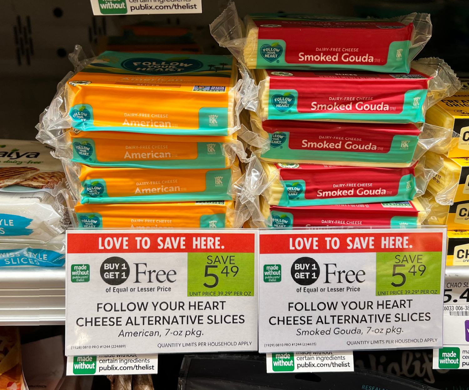 Right now you can pick up a super deal on Follow Your Heart Cheese Slices at Publix. After discounts you can get the packs for FREE. Great time to grab them if you need a dairy free option!