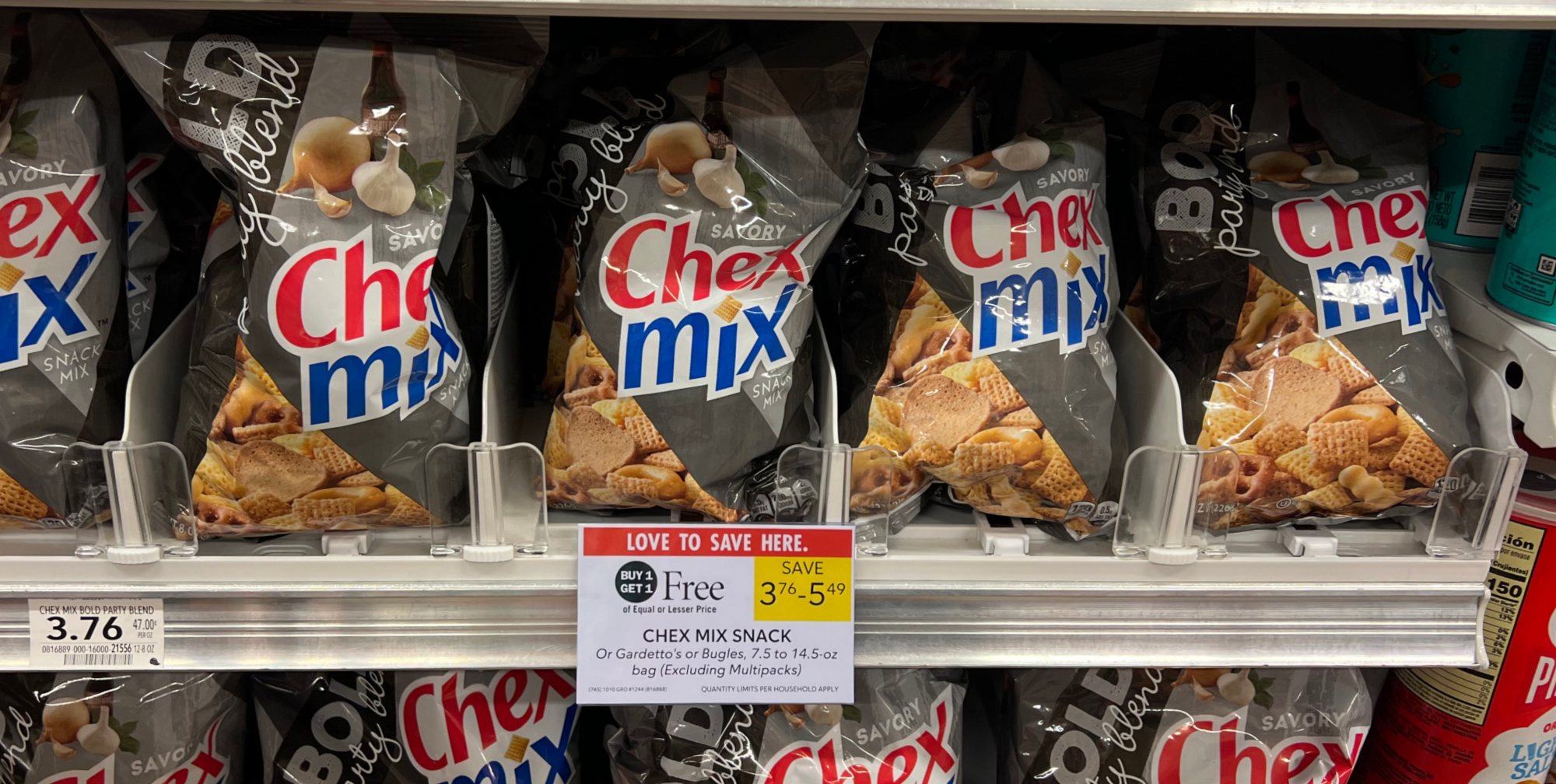 Chex Mix Snacks, or Gardetto’s, or Bugles, 7.5 to 14.5 oz bag, (Excluding Multipacks), BOGO $3.76 – $5.49