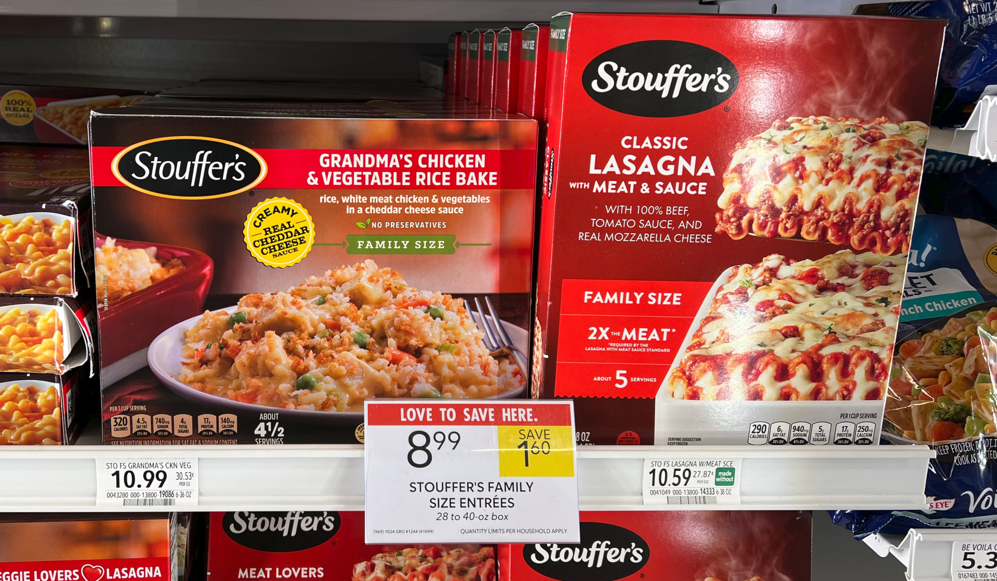 Stouffer’s Family Size Entrees, 28 to 40 oz, $8.99 (reg $10.99)