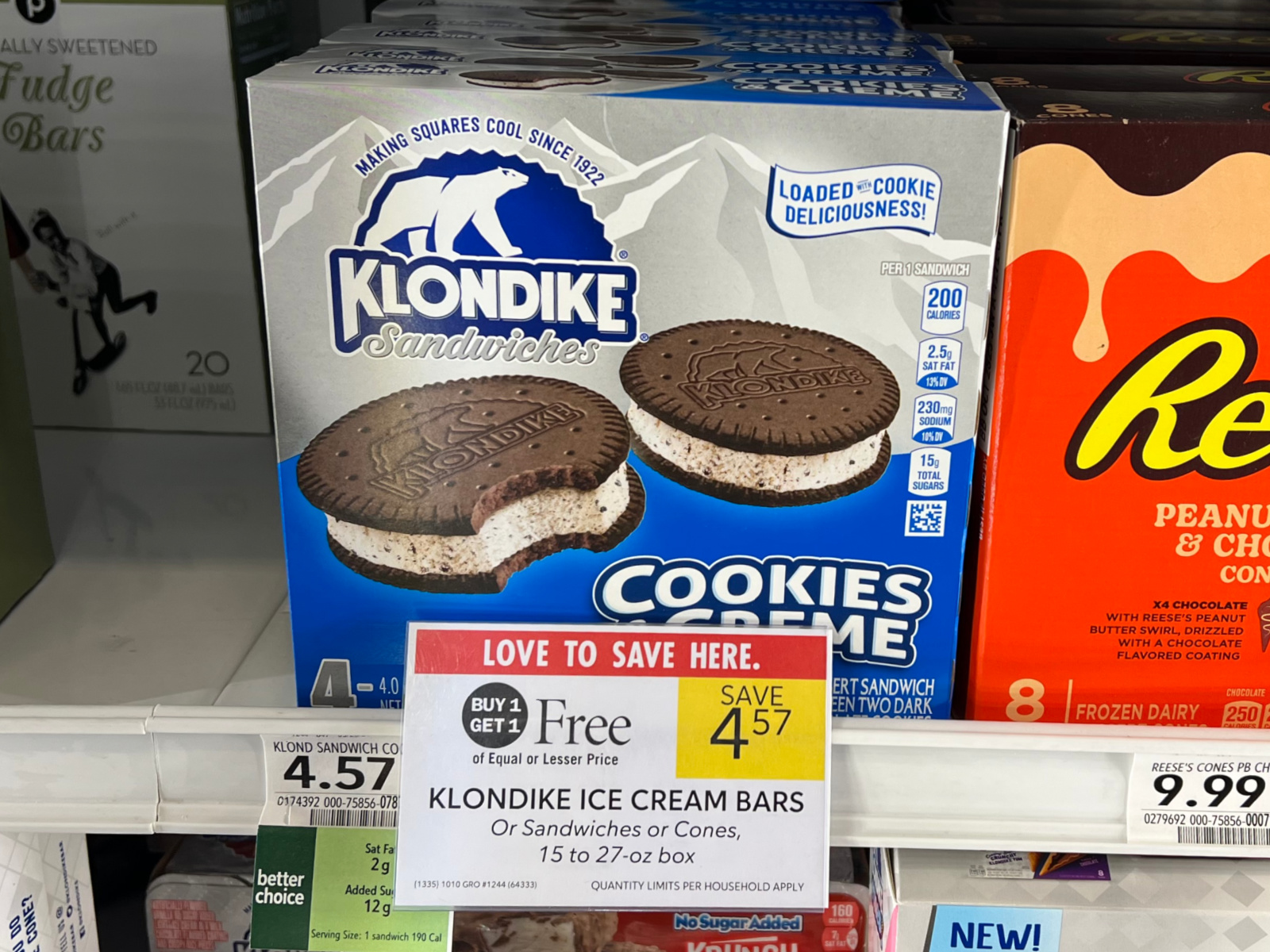 Klondike Ice Cream Bars, or Sandwiches, or Cones, 15 to 27 oz, BOGO $4.57