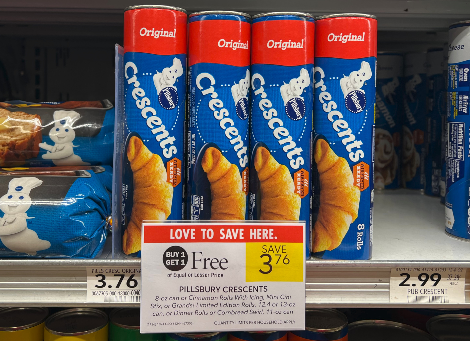 Pillsbury Grands! Biscuits, 16.3 oz can, Crescents, 8 oz, or Cinnamon Rolls With Icing, Mini Cini Stix, or Grands! Limited Edition Rolls, 12.4 or 13 oz can, or Dinner Rolls, or Cornbread Swirl, 11 oz can, BOGO $3.76 – $3.86