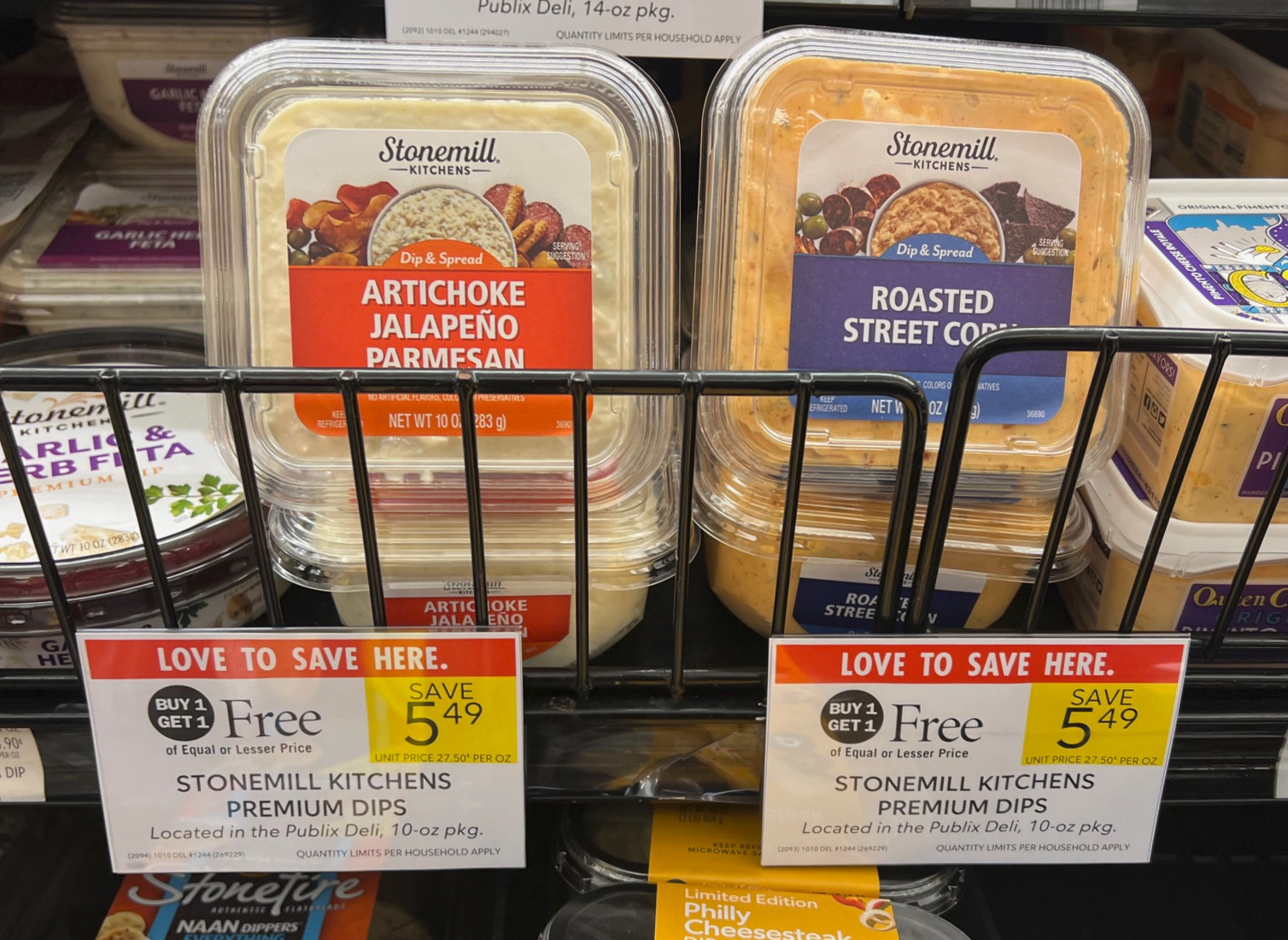 Head over to Publix for a nice deal on Stonemill Kitchens Premium Dips. Pair the coupon with the BOGO sale to get tubs for just $1.75 each.