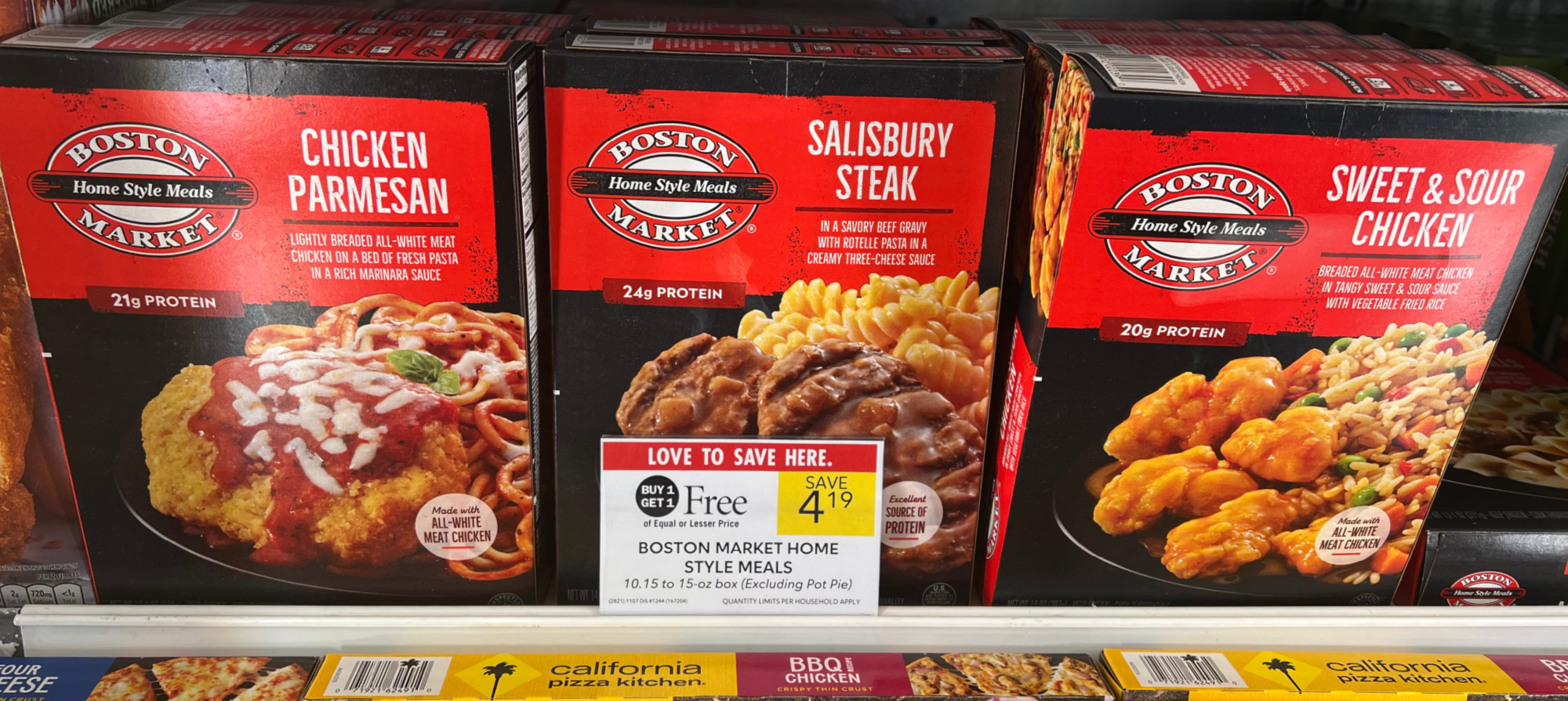 With the BOGO and coupon combo you’ll pay as little as $1.35 for Boston Market Home Style Meals the next time you shop. Tuck them in the freezer for a quick meal when you are short on time.