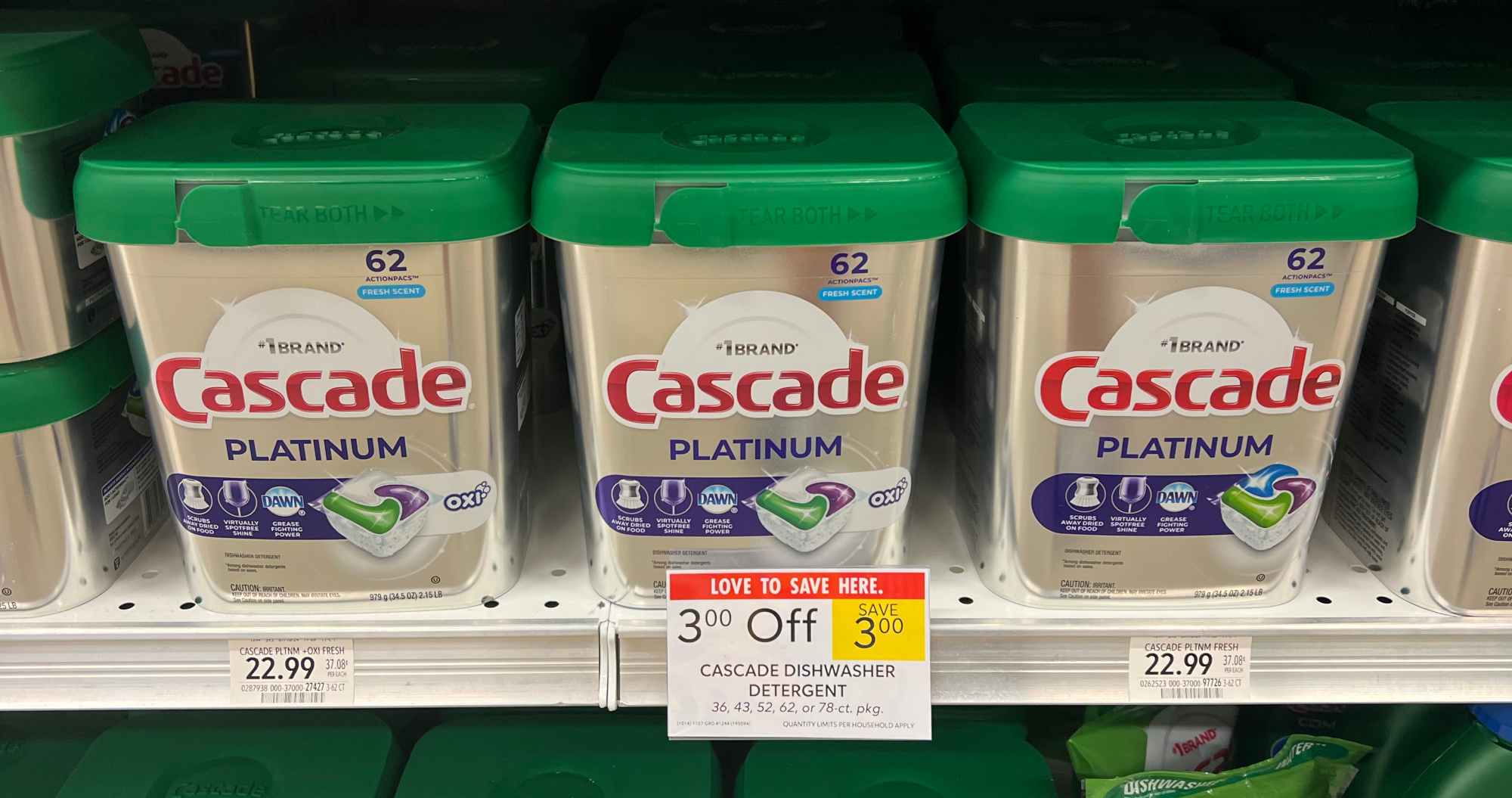 –$3/1 Cascade Platinum Plus, Platinum, or Complete 52ct+ Dishwashing Detergent (excludes travel/trial size) (Publix Digital Coupon)