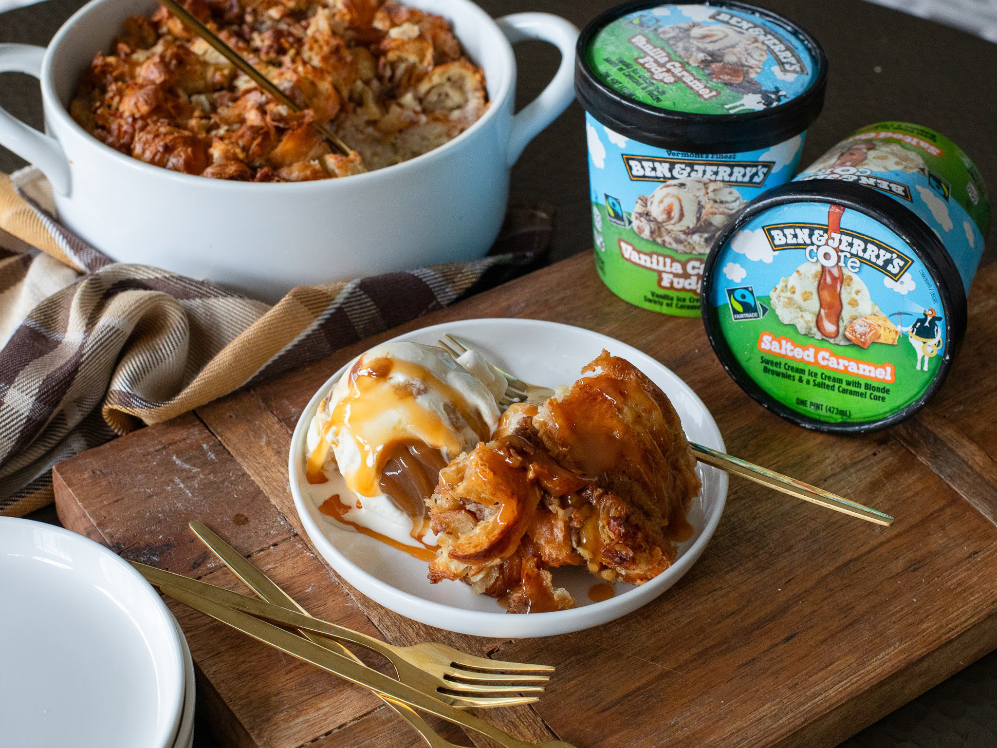 - Allow to cool for 10 - 15 minutes before serving. Serve with additional Ben & Jerry's Ice Cream if desired.
