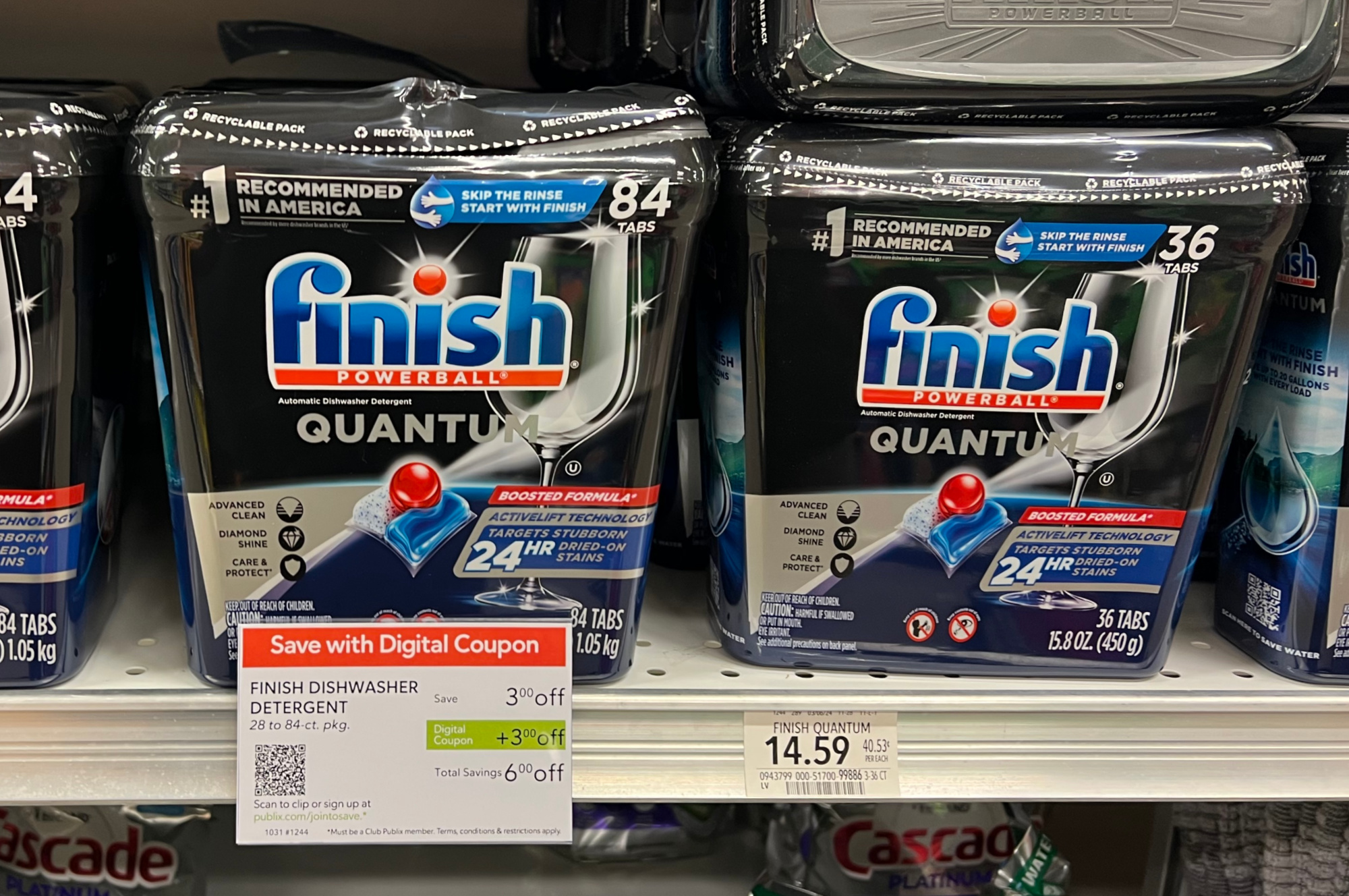 With the discounts available you can get Finish Dishwasher Detergent for as little as $8.59 the next time you shop. Super discount if you need to restock!