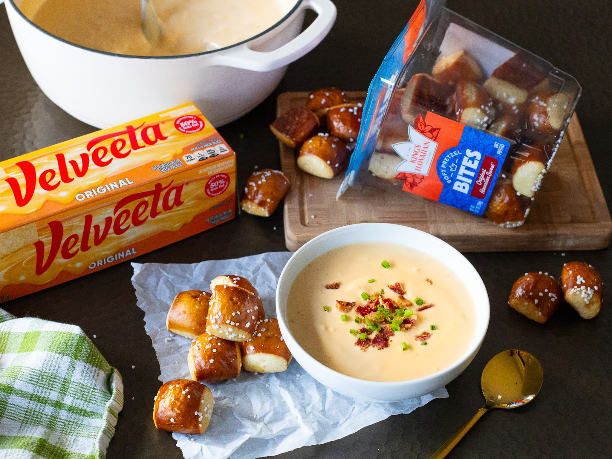Need a hearty one-pot meal that’s packed with flavor? You gotta try my Beer Cheese Soup. This creamy, cheesy soup is made with VELVEETA® and served with KING’S HAWAIIAN® Soft Pretzel Bites. It’s the perfect weeknight meal that your whole family will love.