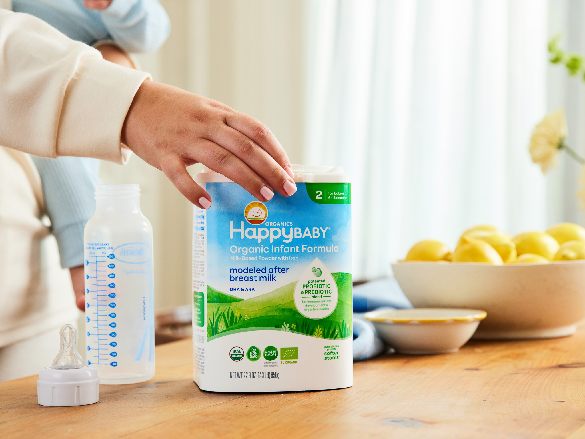 Premium Ingredients: Happy Baby® Stage 2 organic formula features their patented Probiotic and Dual Prebiotic Blend, is EU Organic certified, and contains expert-recommended DHA levels.