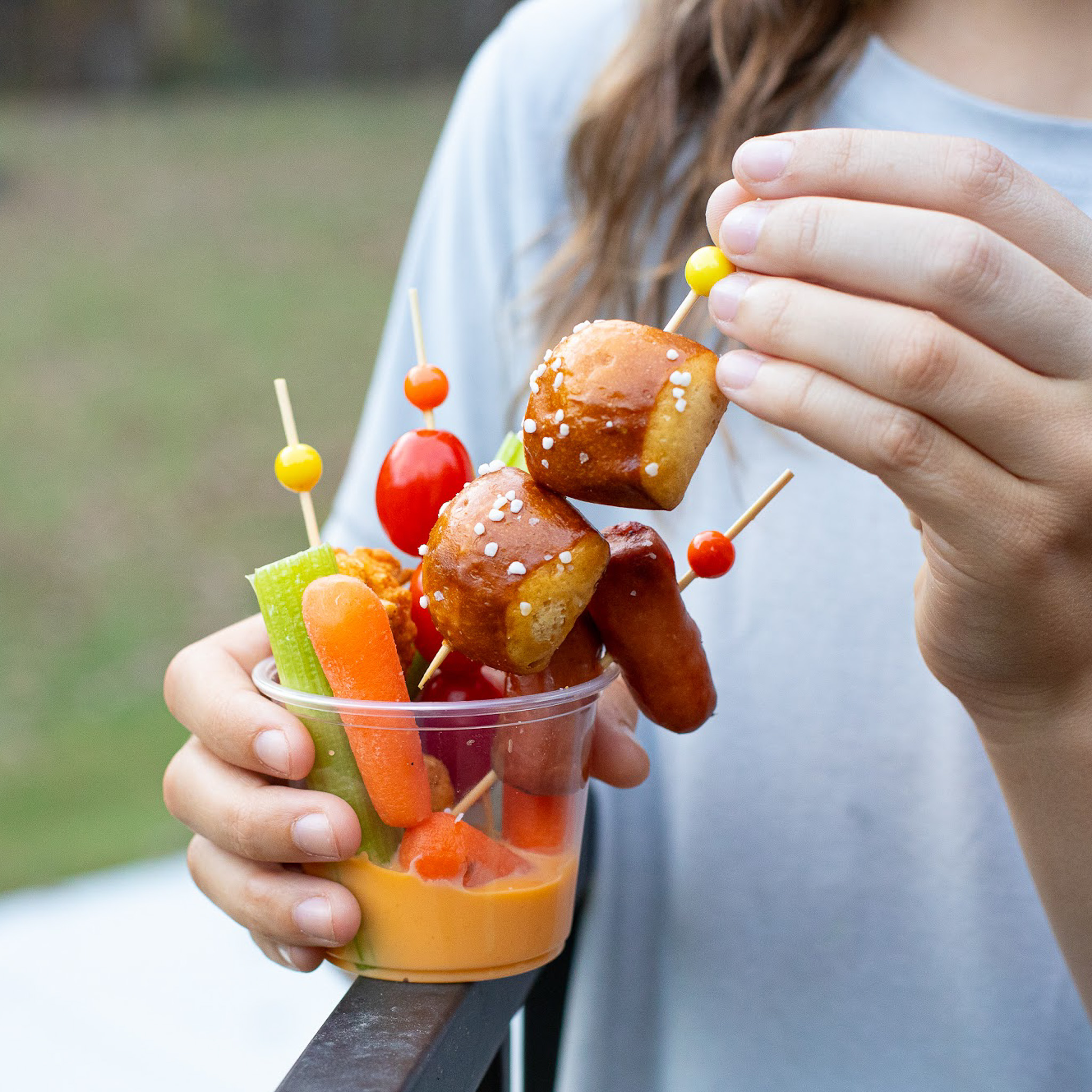 This DIY snack allows your guests to customize their own delicious creations. Just put out an assortment of dippers, such as KING’S HAWAIIAN Soft Pretzel Bites, celery, carrots, popcorn chicken, and more. Folks can add the creamy, cheesy goodness of VELVEETA queso dip to their cups and then add their favorite dippers. It’s the perfect snack for any gathering, big or small!