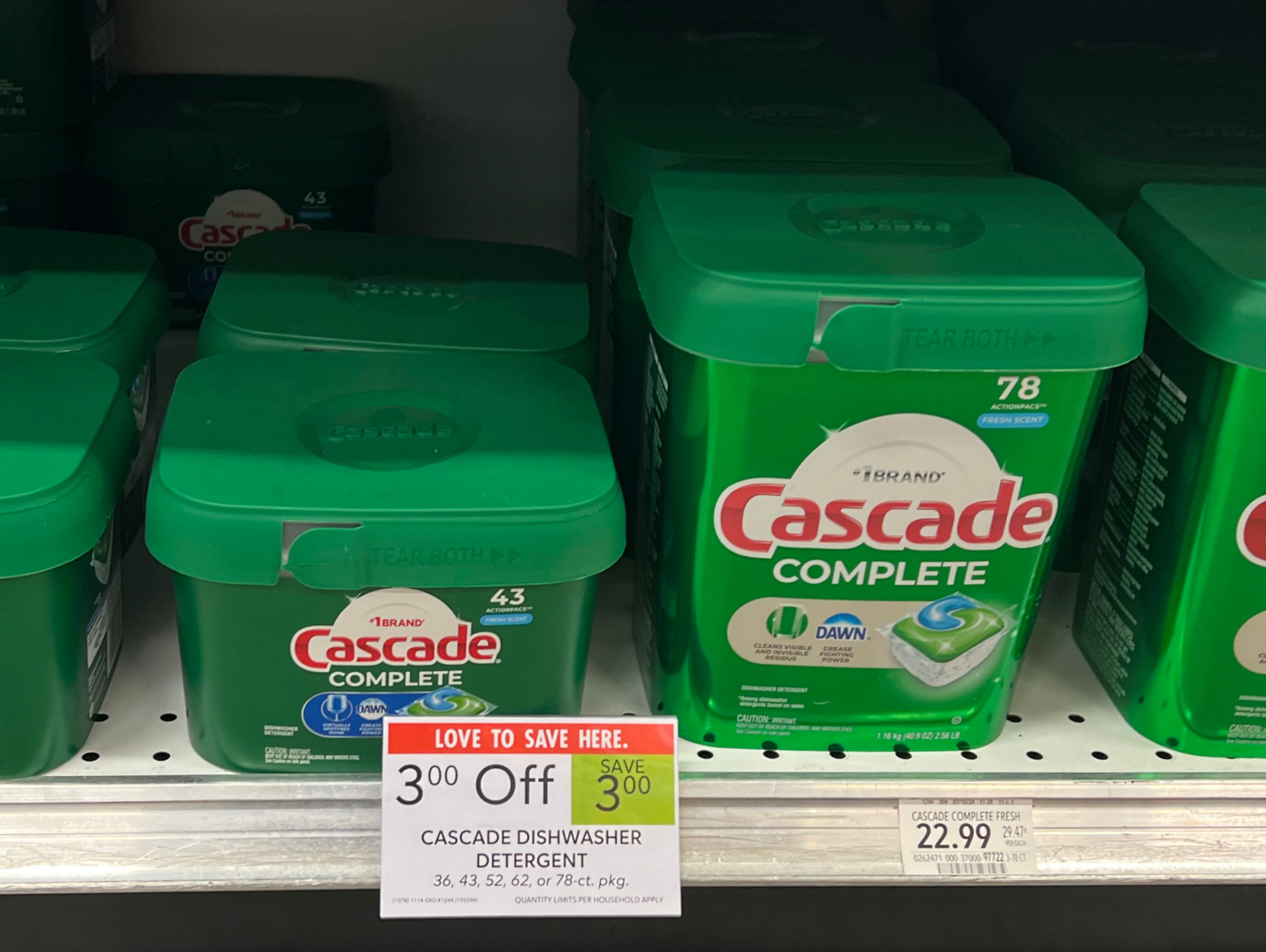 Cascade Dishwasher Detergent, 52, 62, or 78 ct, $3 Off, $22.99