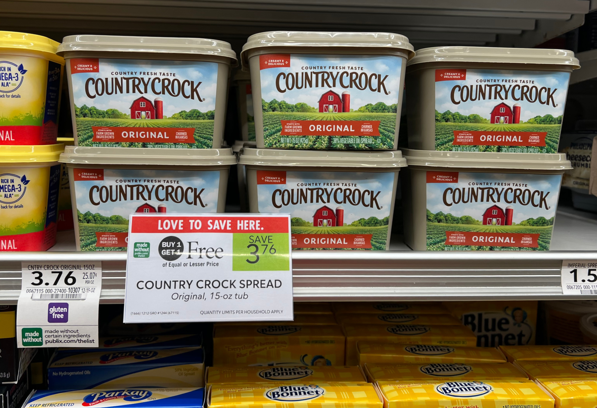 Pick up a super discount on Country Crock Spread this week at Publix. When you sign up for emails, the folks at Country Crock will email you a coupon that will help you get the tubs as low as 38¢.