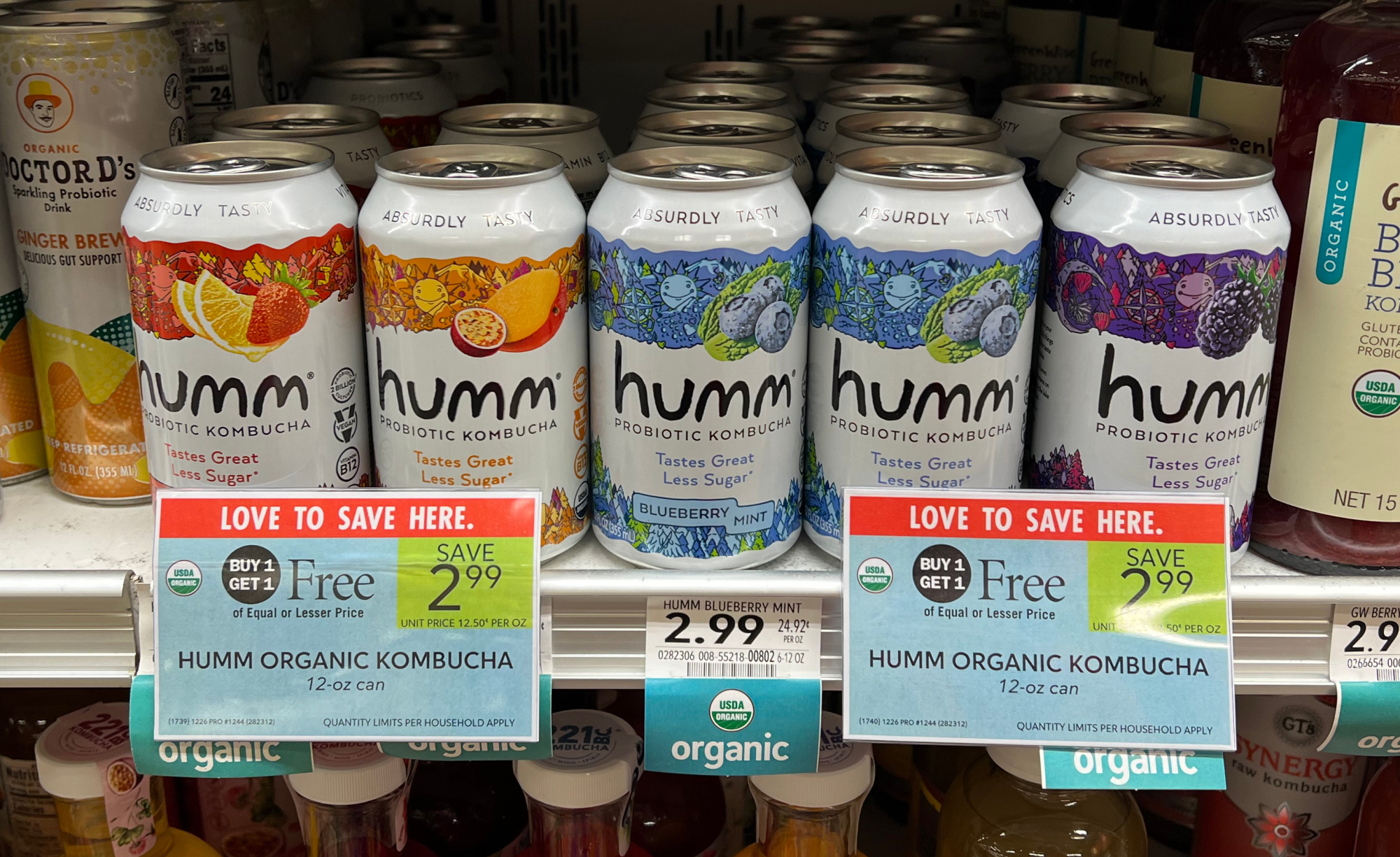 Humm Organic Kombucha, 12 oz can, BOGO $2.99