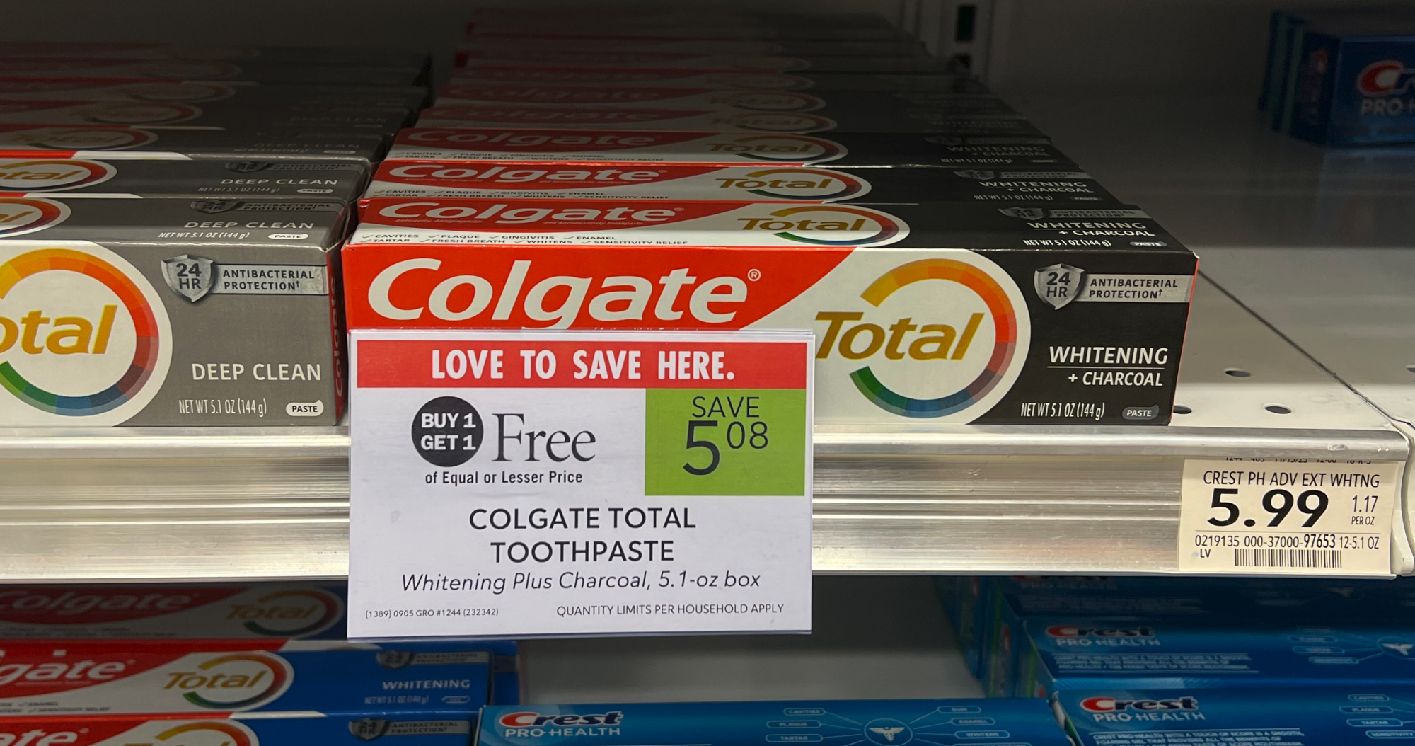 Colgate Total Toothpaste, 5.1 oz, or Sensitive, 6 oz, BOGO $5.08 – $5.99