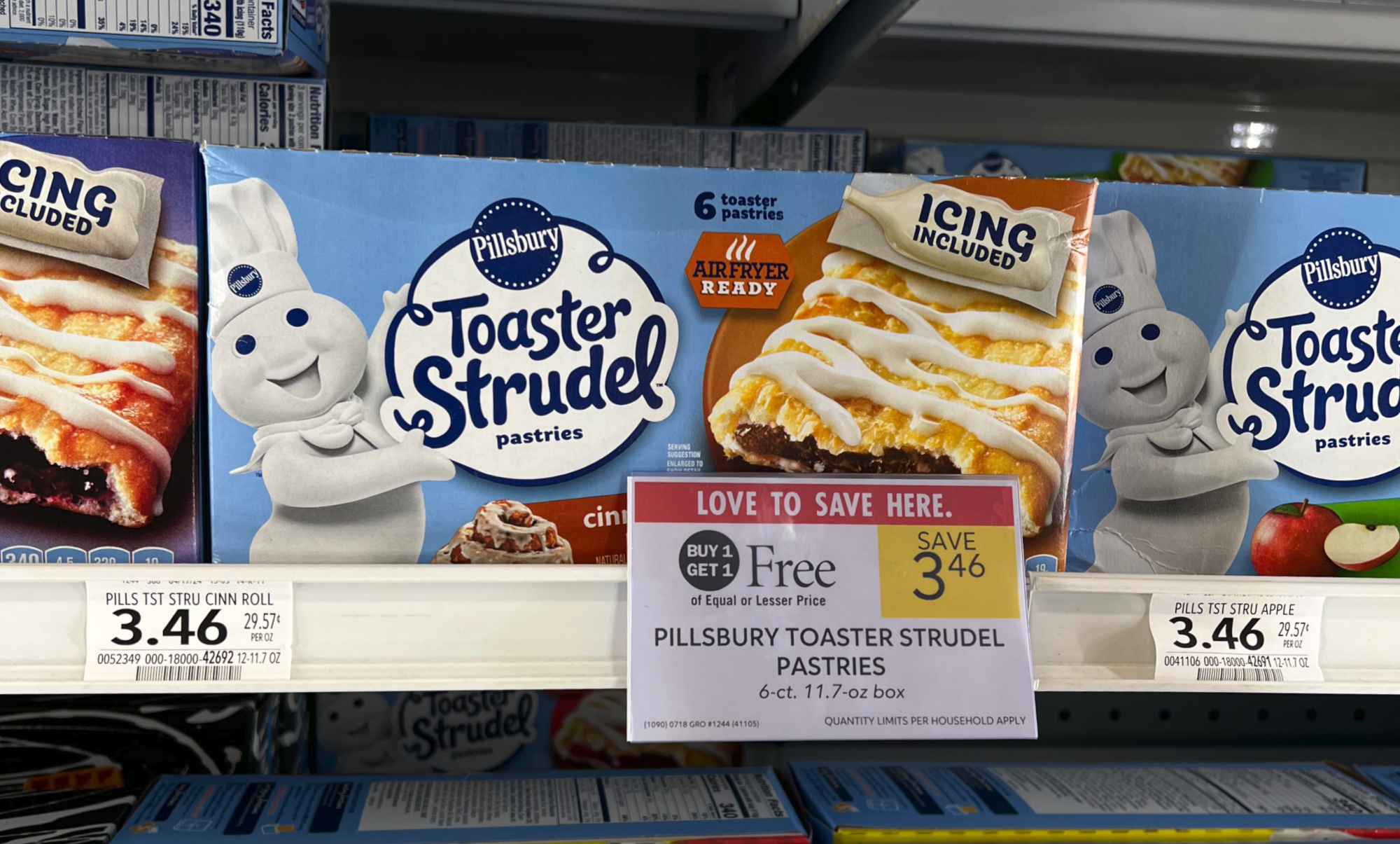Pillsbury Toaster Strudel Pastries, 6 ct, 11.7 oz, or Toaster Scrambles, 4 ct, 7.2 oz, BOGO $3.46 – $3.65