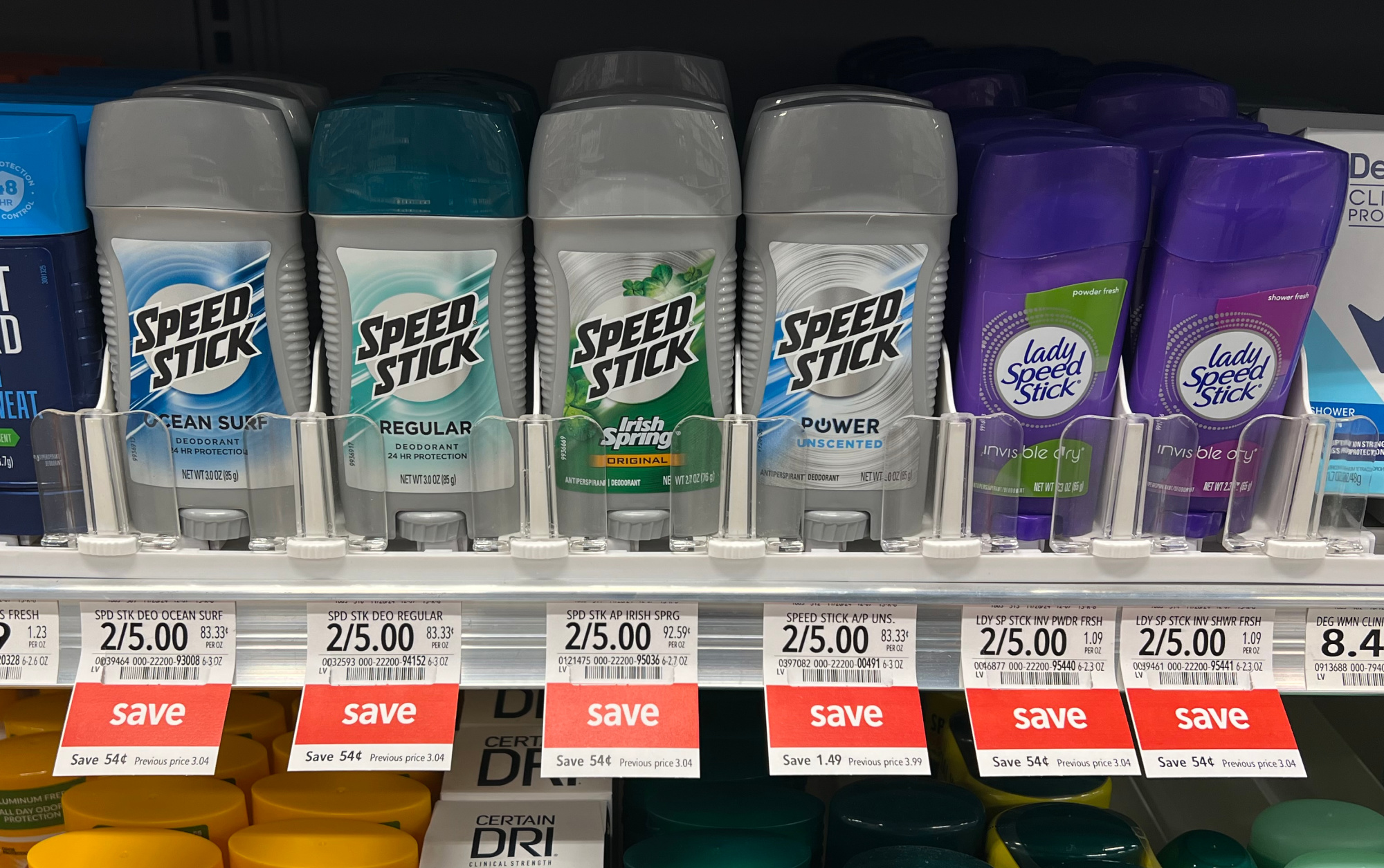 Speed Stick Deodorant Stick, 2 to 3 oz, 2/$5 (reg $3.04 – $3.99)
