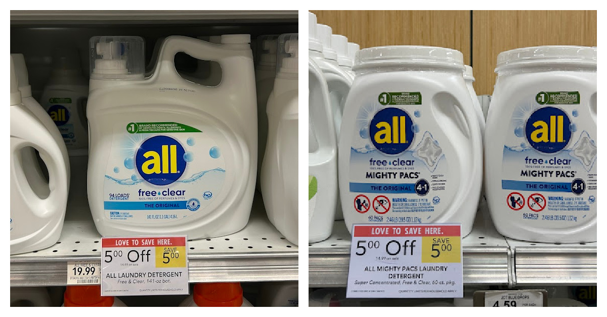 If your preferred brand of laundry detergent is All Detergent, you can score some great discounts this week at Publix. After sale and coupons, you can pick up the big containers of detergent for as little as $11.49.