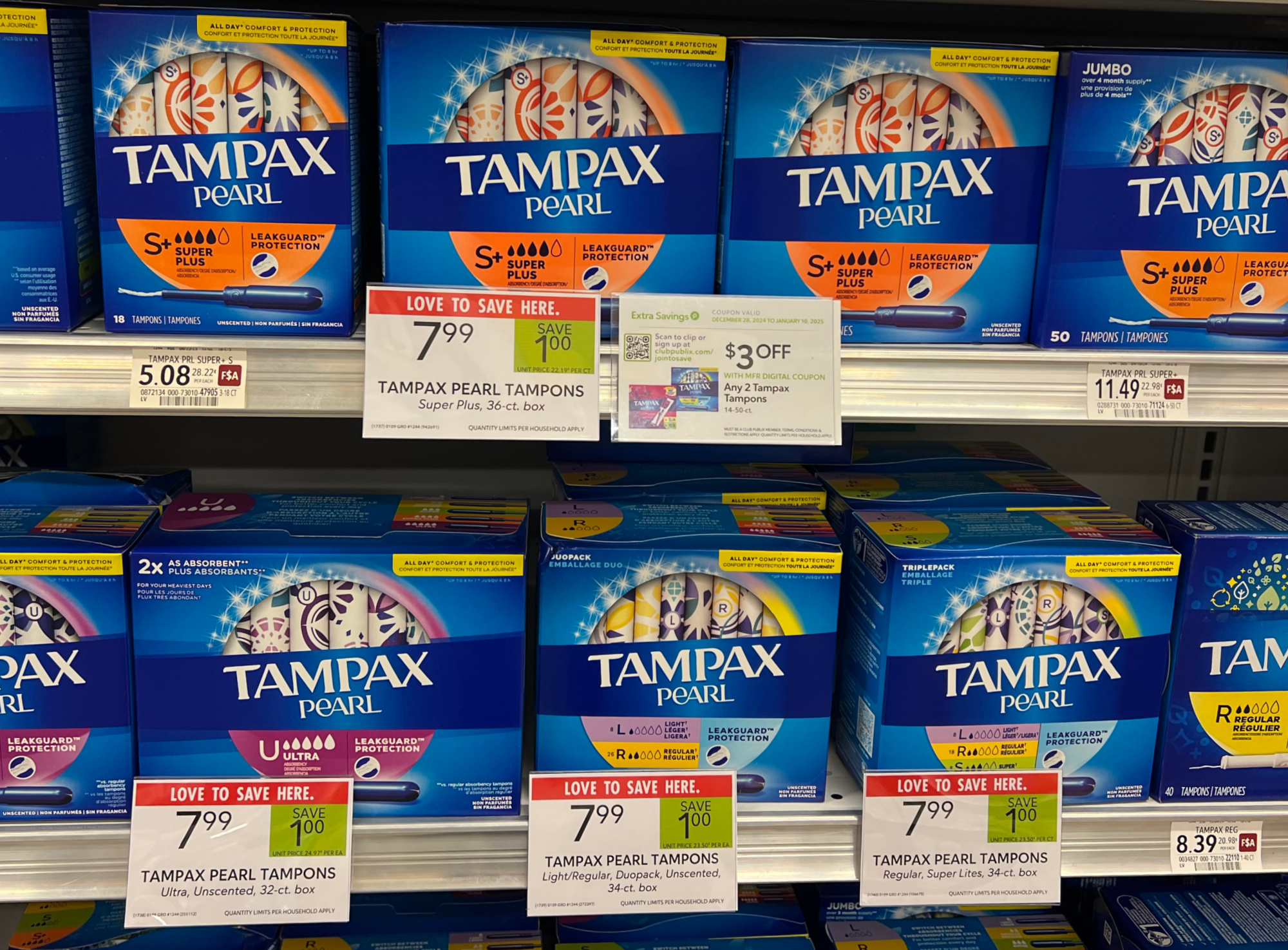 Tampax Tampons, 22 to 36 ct, $7.99 (reg $8.99)