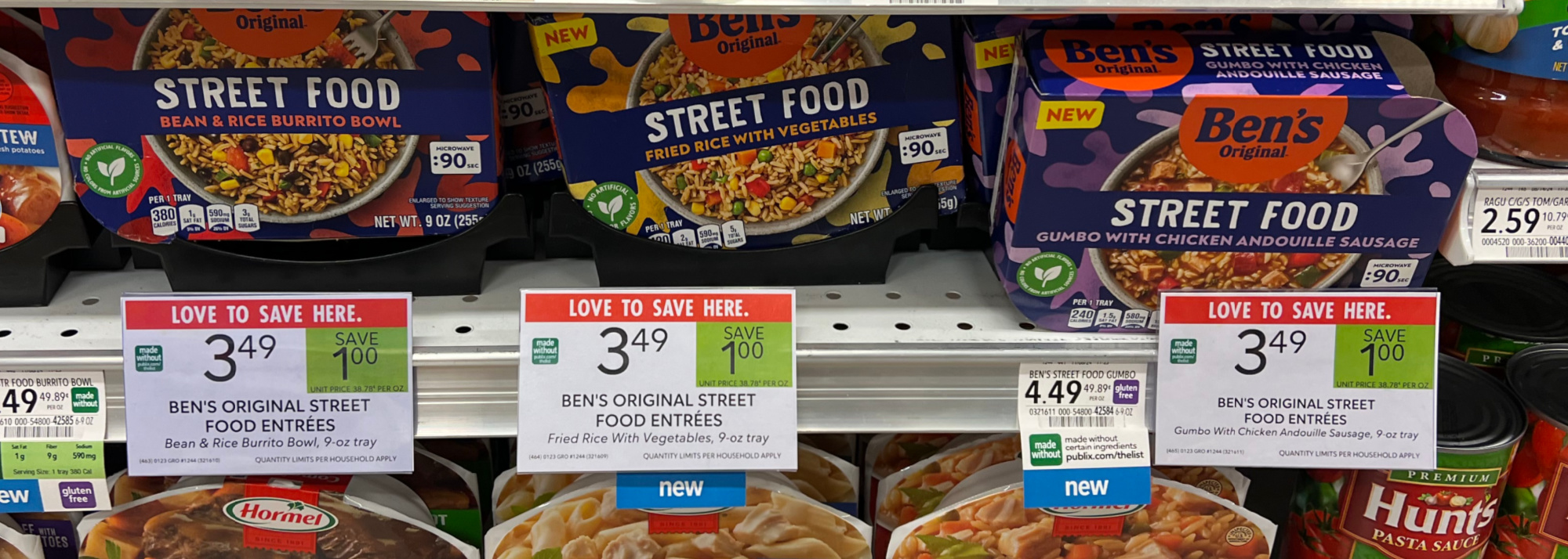 Look for a the new Ben’s Original Street Food Entrees on the shelf at Publix. With the sale and cash back combo you can try them for as little as $2.49 each.