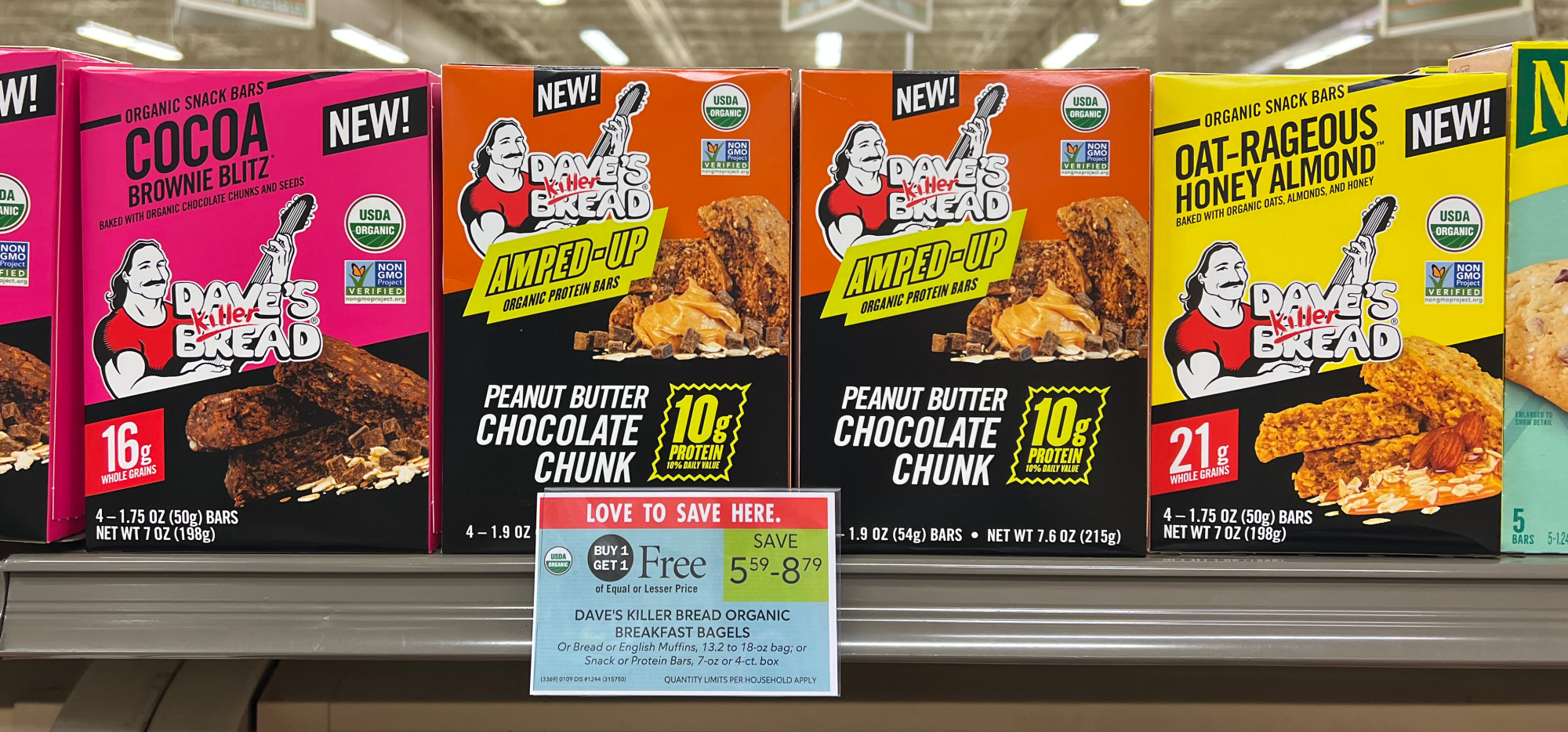 –$1.50/1 Dave’s Killer Bread Snack or Protein Bars (Ibotta Deposit) – Limit 5